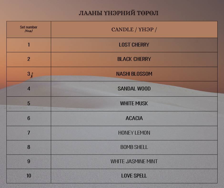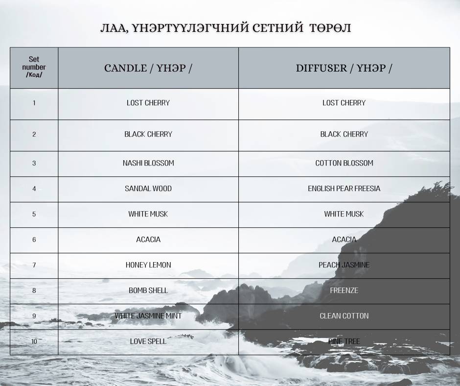 10 төрлийн анхилуун үнэртэй лаа ба үнэртүүлэгчийн хослол