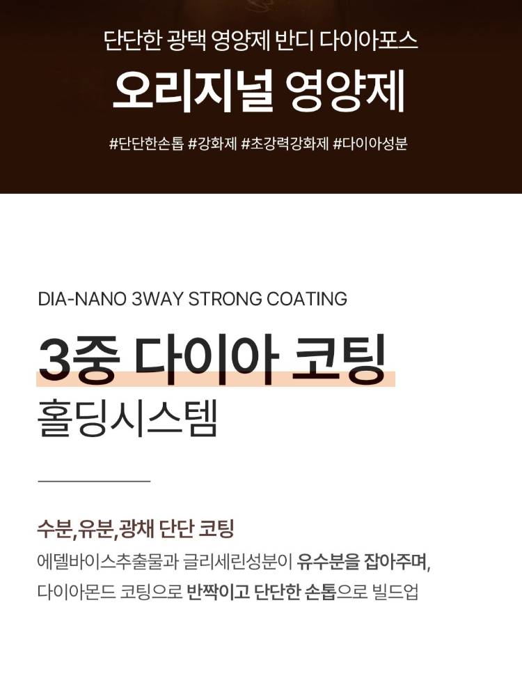 Хугарамтгай, сэвтэж эвдэрсэн хумсыг хурдан бэхжүүлдэг хумс арчилгааны бүтээгдэхүүн бөгөөд кератин, кальцийн найрлагатай. Хумсыг бат бөх, уян хатан болгож, гадаргууг толигор харагдуулна.