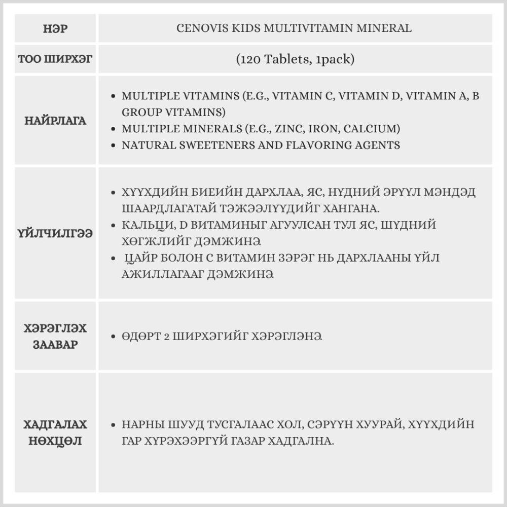 Cenovis Kids Multivitamin Mineral 120 Tablets, 1 unit (хүүхдийн витамин)