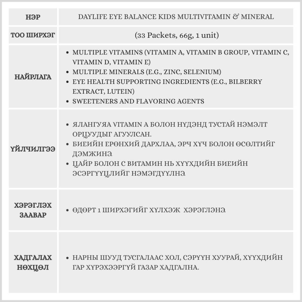 Daylife Eye Balance Kids Multivitamin & Mineral 33 Packets, 66g, 1 unit(хүүхдийн витамин)