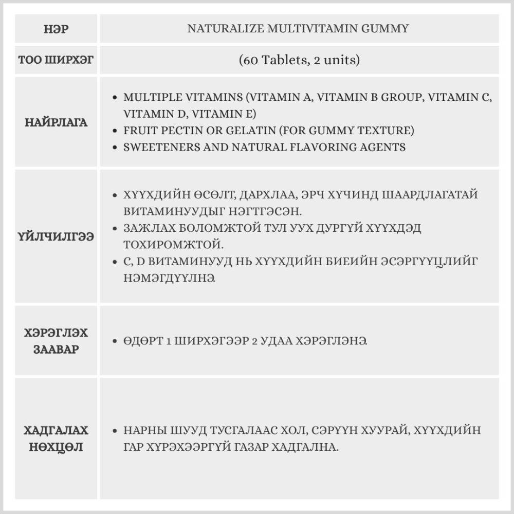 Naturalize Multivitamin Gummy 60 Tablets, 2 units(хүүхдийн витамин)