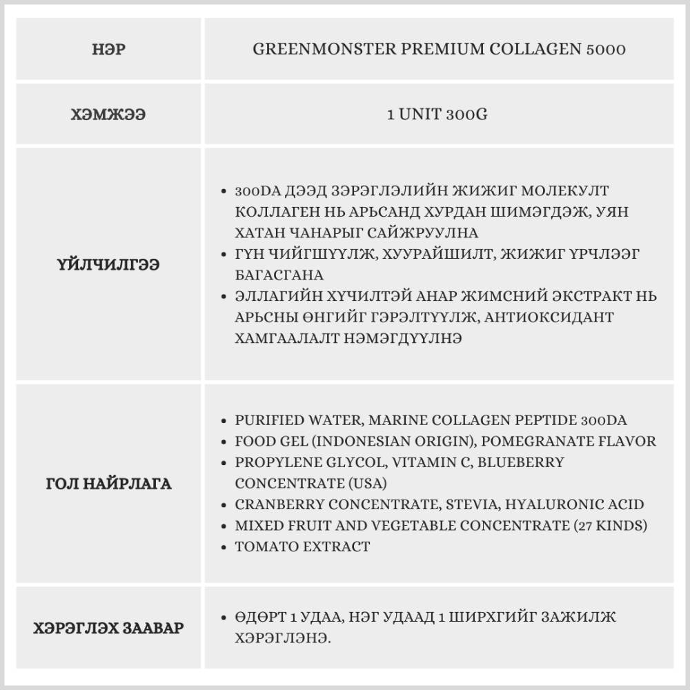 300Da жижиг молекулт 5,000mg коллаген нь арьсанд хурдан шимэгдэж уян хатан чанар, толигор байдлыг дэмжинэ.Анар жимсний 40% концентрац болон антиоксидант найрлага нь арьсны өнгийг гэрэлтүүлж, хамгаалалтыг сайжруулна.