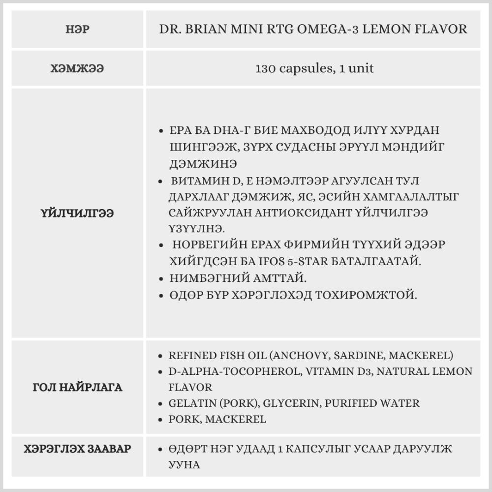 EPA ба DHA-г бие махбодод илүү хурдан шингээж, зүрх судасны эрүүл мэндийг дэмжинэ. Витамин D, Е нэмэлтээр агуулсан тул дархлааг дэмжиж, яс, эсийн хамгаалалтыг сайжруулан антиоксидант үйлчилгээ үзүүлнэ.