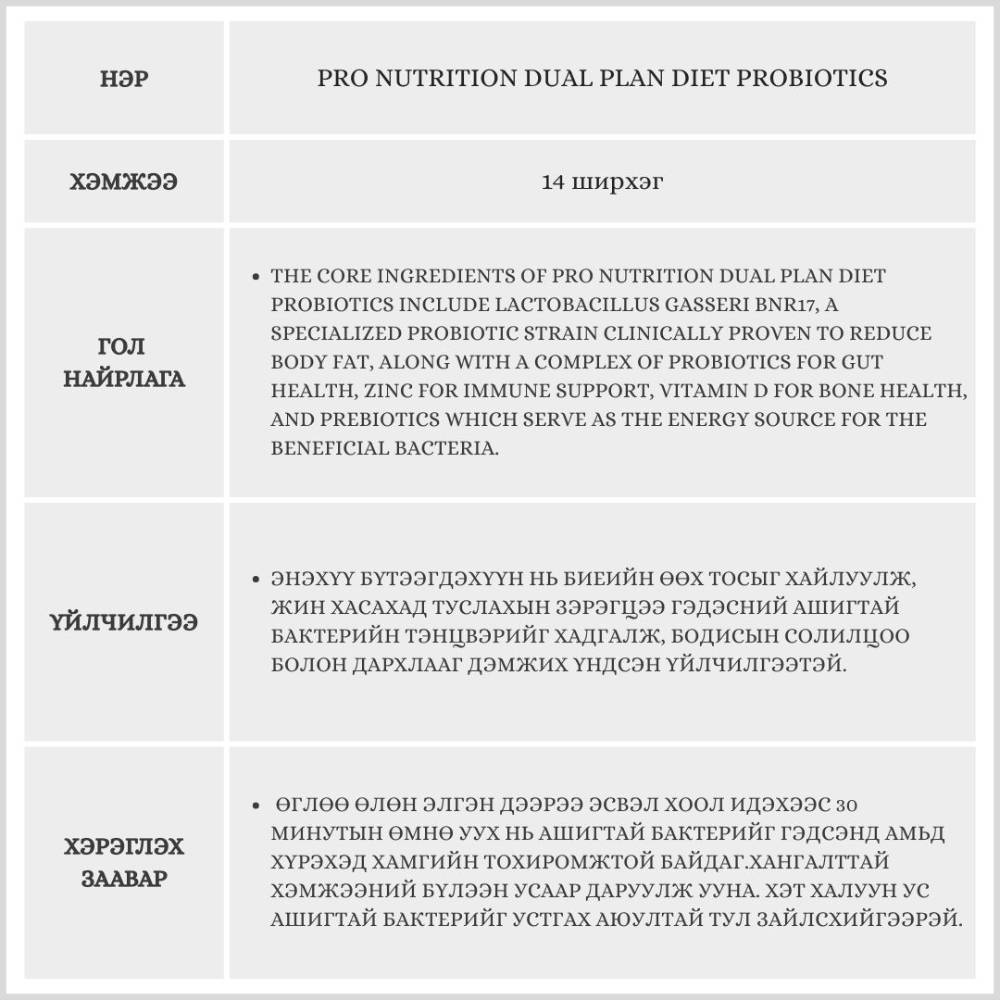 Энэхүү бүтээгдэхүүн нь биеийн өөх хасах болон гэдэсний ашигтай бактерийг нэмэгдүүлэх үйлчилгээг нэг дор үзүүлдэг хос үйлчилгээтэй тураах нэмэлт бэлдмэл юм. Энэ нь бодисын солилцоог дэмжих замаар эрүүлээр жин хасахад тусалдаг.