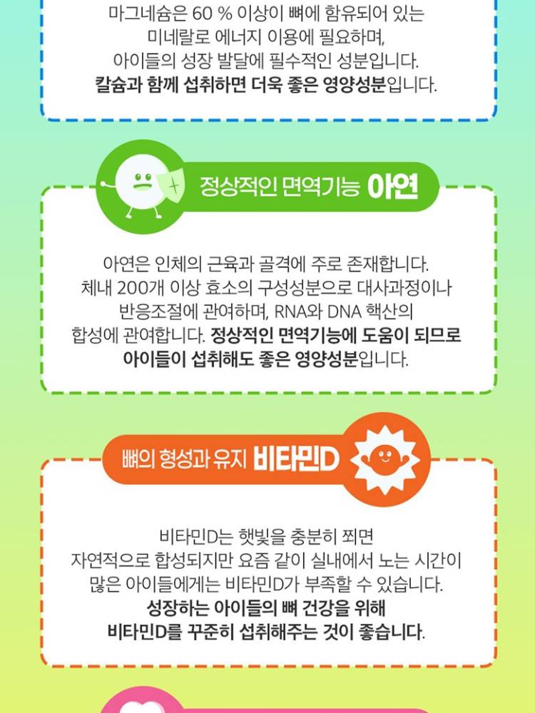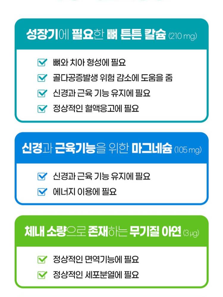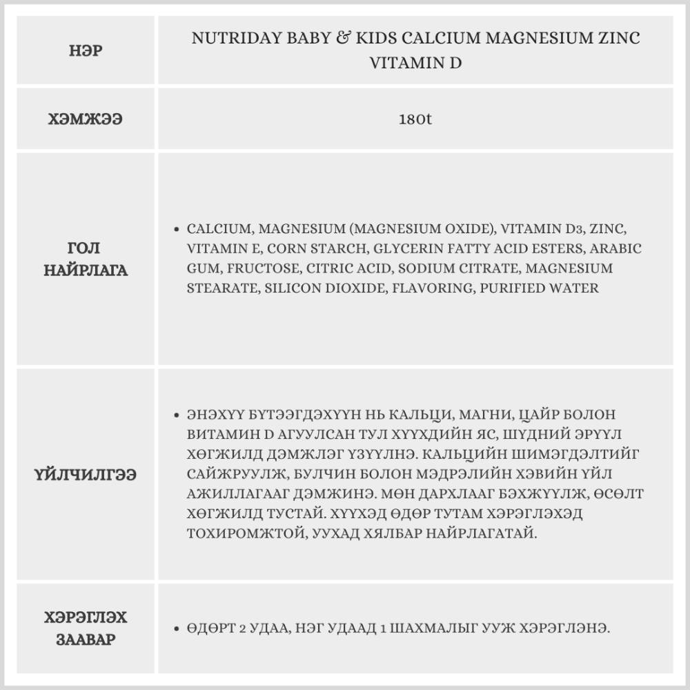 Хүүхдийн өсөлтийн үе шатанд тохирсон найрлагатай бөгөөд булчин, мэдрэлийн хэвийн үйл ажиллагааг дэмжинэ. Мөн дархлааг бэхжүүлж, эрүүл өсөлт хөгжилд тустай.Кальци, магни, витамин D агуулсан тул яс, шүдийг бэхжүүлж, биеийн ерөнхий тэнцвэрийг дэмжинэ.