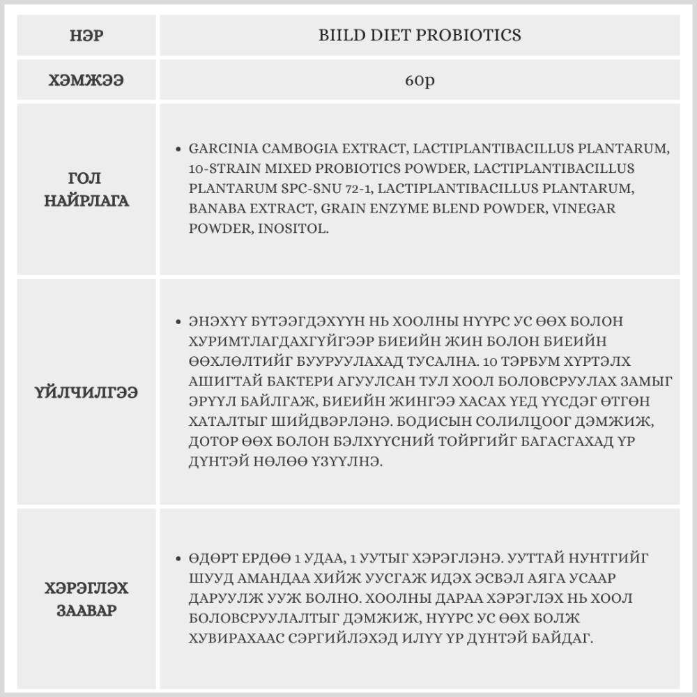 Гэдэсний ашигтай бактери болон биеийн өөхлөлтийг бууруулах үйлчилгээг нэг дор агуулсан. Нүүрс ус өөх болон хуримтлагдахыг дарангуйлж, жин хасахад тусална.