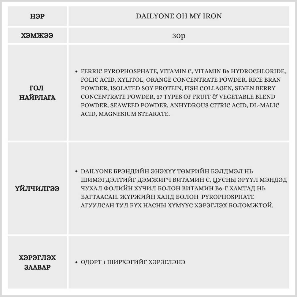 Энэхүү бүтээгдэхүүн нь төмрийн дутагдлаас сэргийлэх, цус төлжилтийг дэмжих үйлчилгээтэй бөгөөд жүржний амттай тул уухад маш тааламжтай нунтаг хэлбэрийн төмрийн бэлдмэл юм.