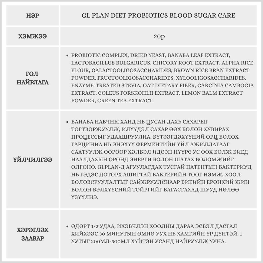 Diet Probiotics Blood Sugar Care, 20p/Тураах бүтээгдэхүүн/