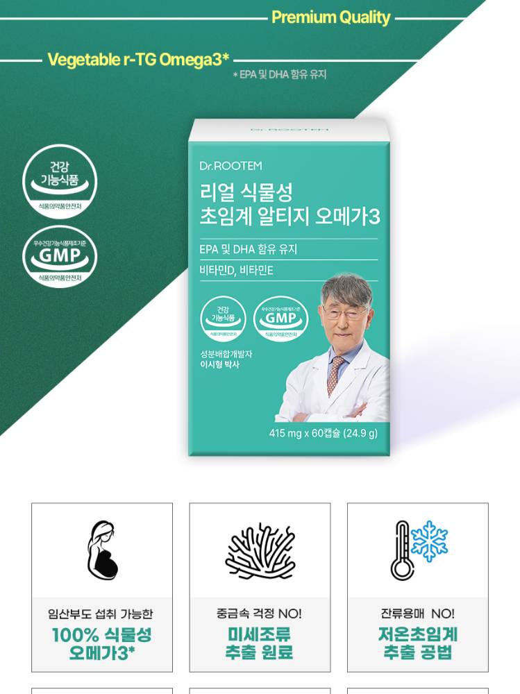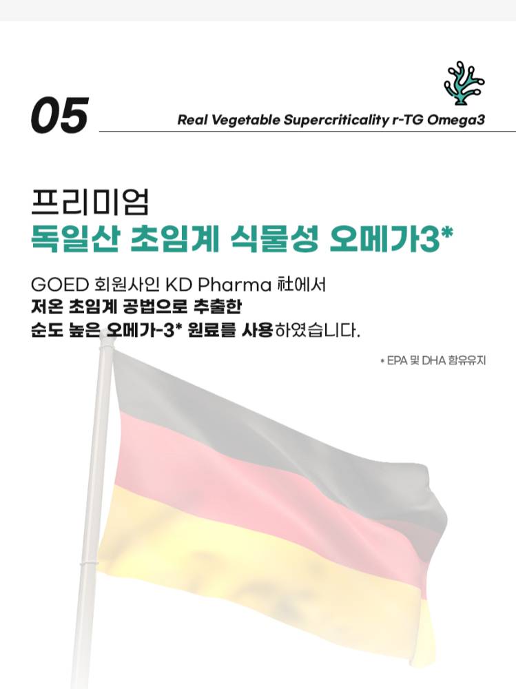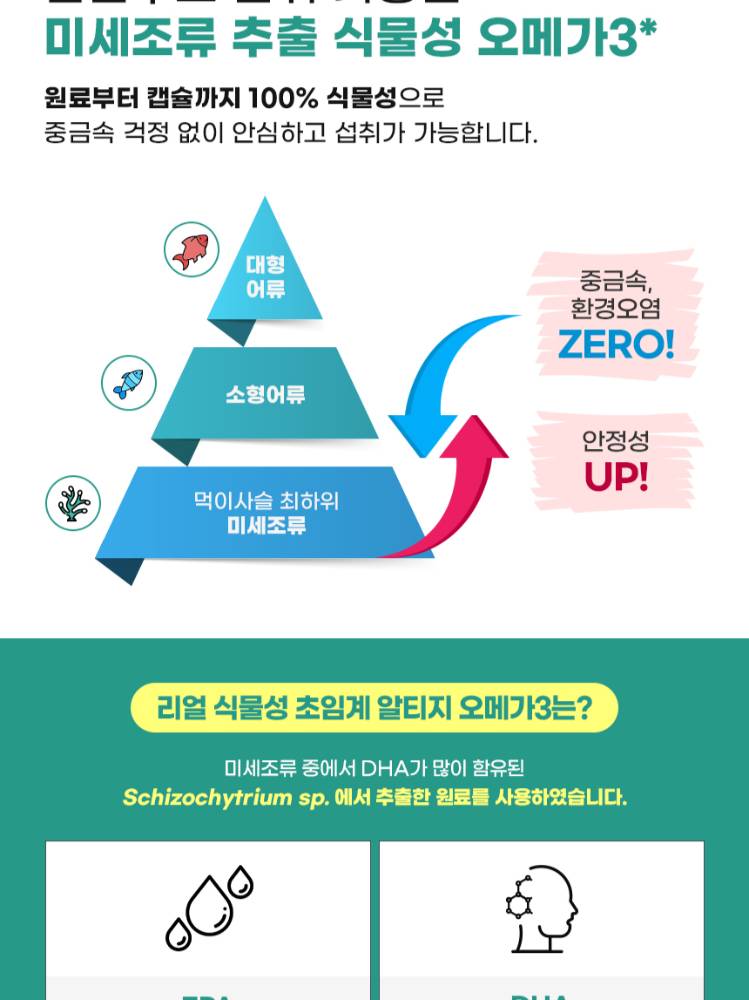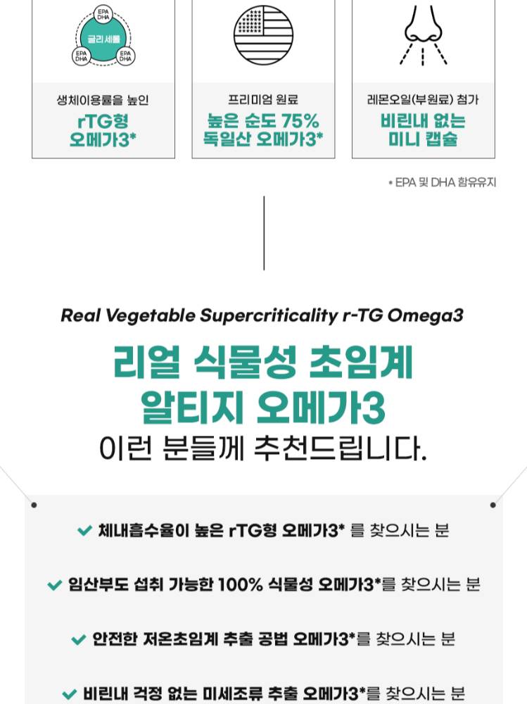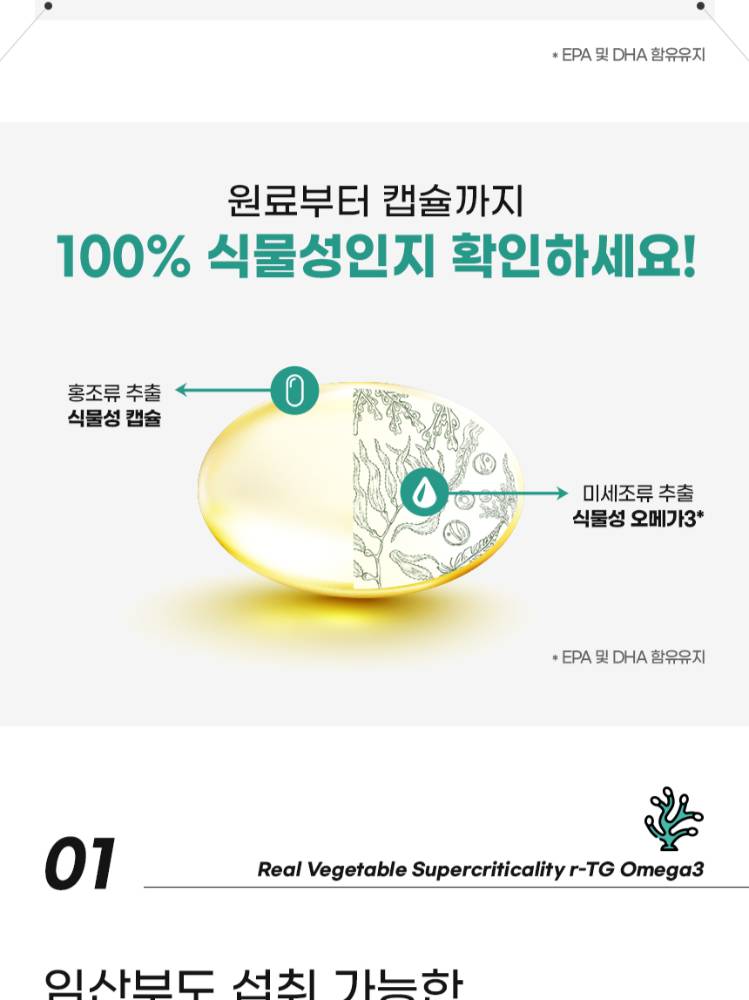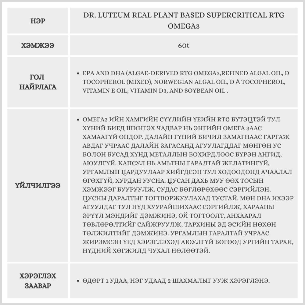 Энэхүү бүтээгдэхүүн нь 60 ширхэгтэй, 1 сарын хэрэглээг багтаасан бөгөөд загаснаас бус, далайн бичил замагнаас гаргаж авсан омега3 юм. Иймээс загасны үнэр огт гарахгүй, мөн цагаан хоолтон болон жирэмсэн эхчүүд хэрэглэхэд тохиромжтой.