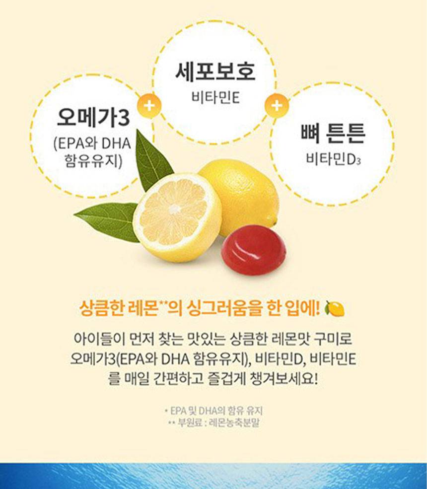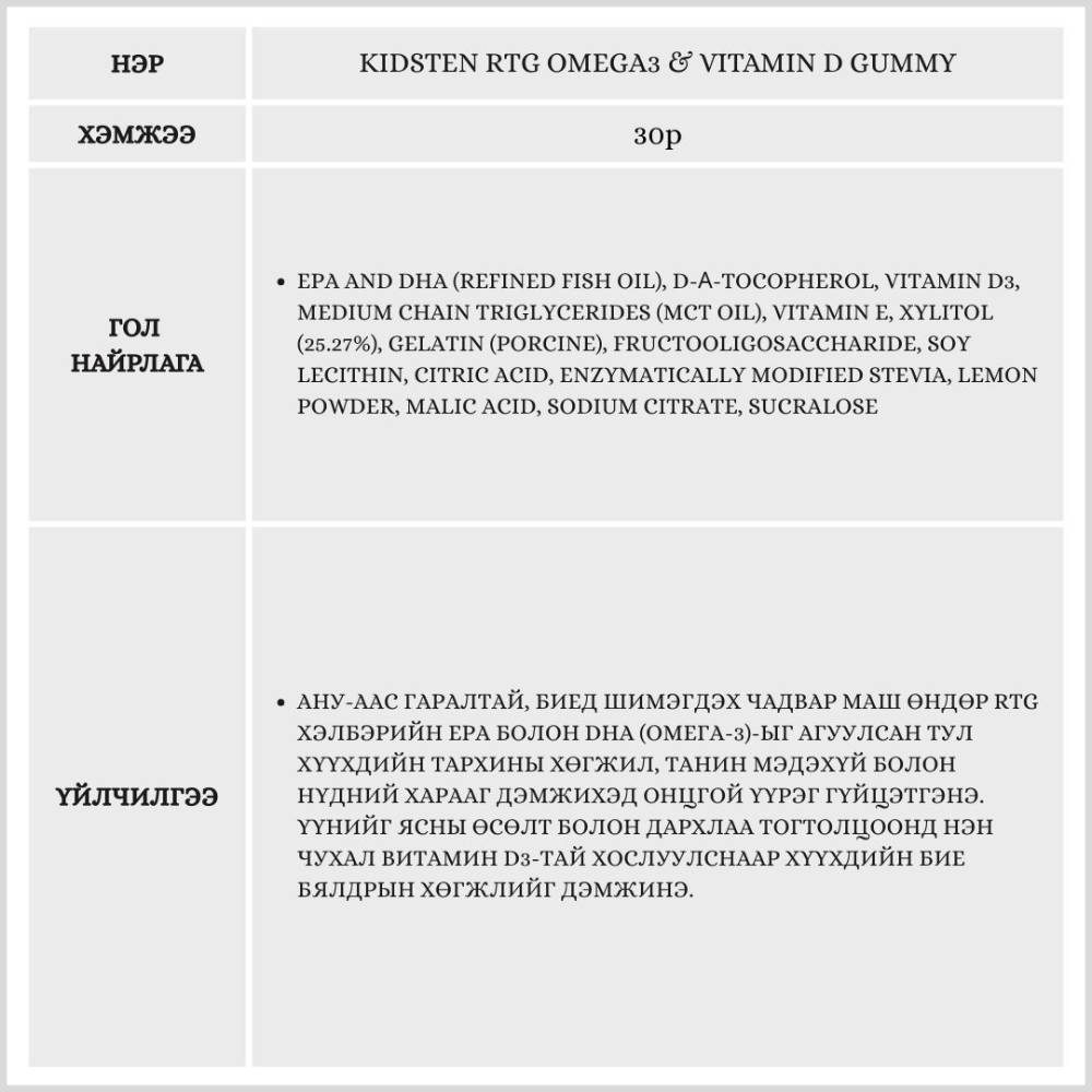 Энэхүү бүтээгдэхүүн нь хүүхдийн тархины хөгжил, нүдний хараа болон ясны өсөлтийг дэмжих зорилгоор гаргаж авсан, загасны тосны эхүүн амтгүй, нимбэгний сэргэг амттай зажилдаг Д витамин юм.