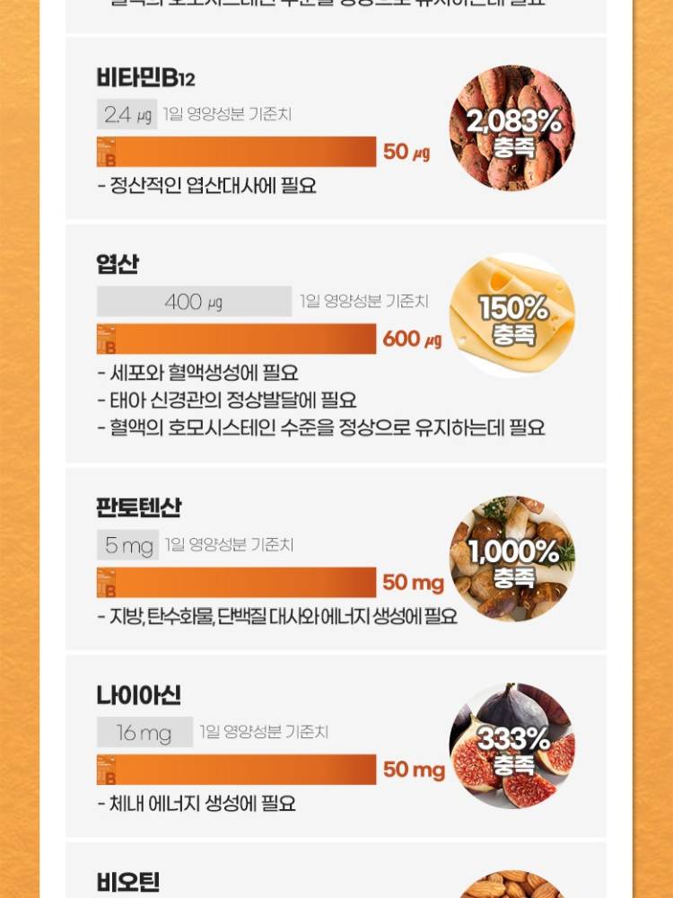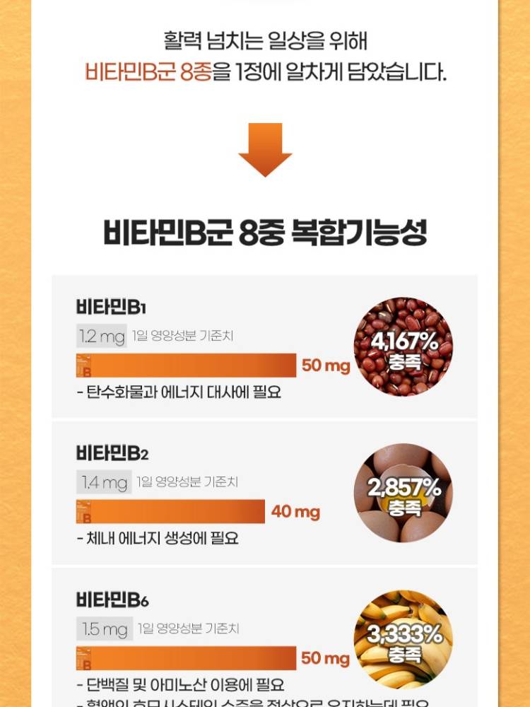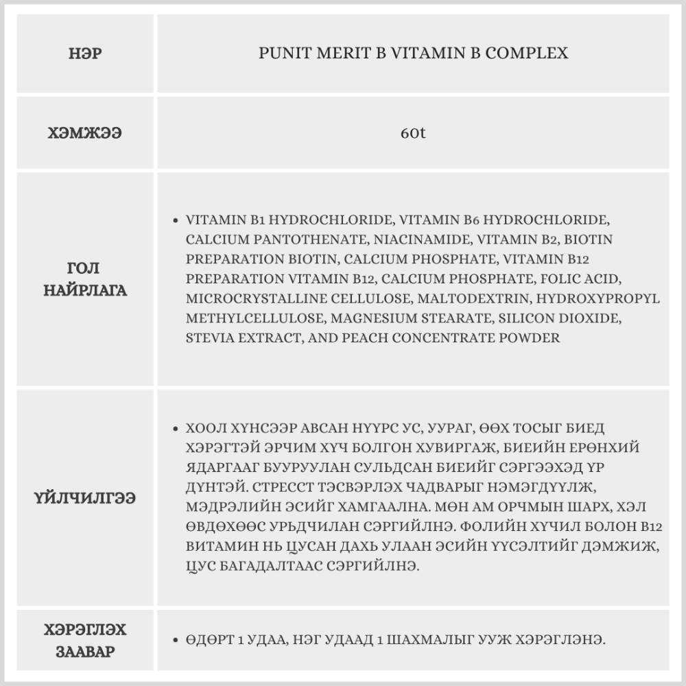 Энэхүү витамин нь 60 ширхэгтэй бөгөөд 2 сарын хэрэглээг агуулсан. Эрчим хүчний солилцоог сайжруулж, ядаргаа тайлна. Мэдрэлийн системийн эрүүл мэндийг дэмжиж, цус төлжилтийг дэмжинэ.