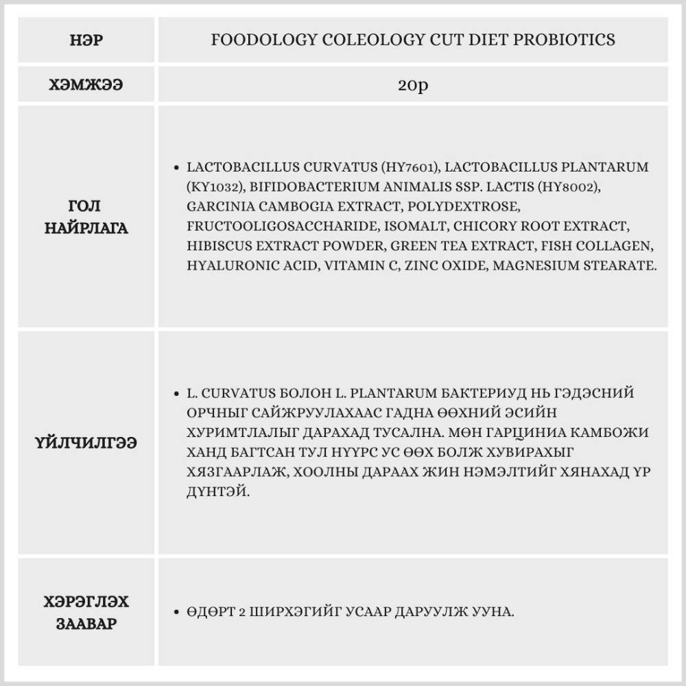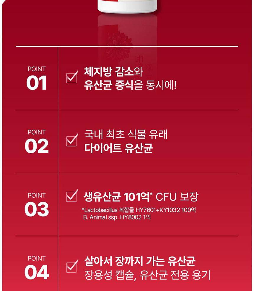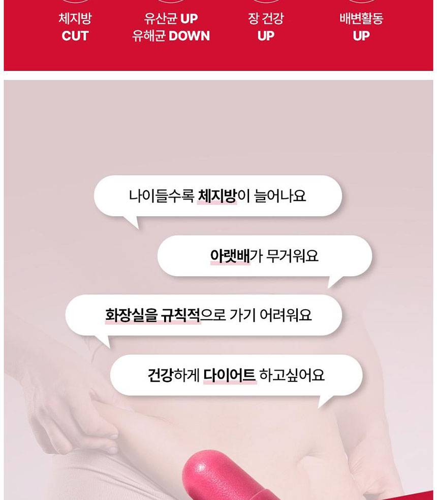 Дэглэм барихын зэрэгцээ гэдэсний эрүүл мэндийг дэмжих үйлчилгээтэй ашигтай бактер юм. Энэхүү бүтээгдэхүүн нь Солонгост маш алдартай бөгөөд ашигтай бактери болон биеийн жин бууруулах найрлагыг нэг дор багтааснаараа онцлогтой.