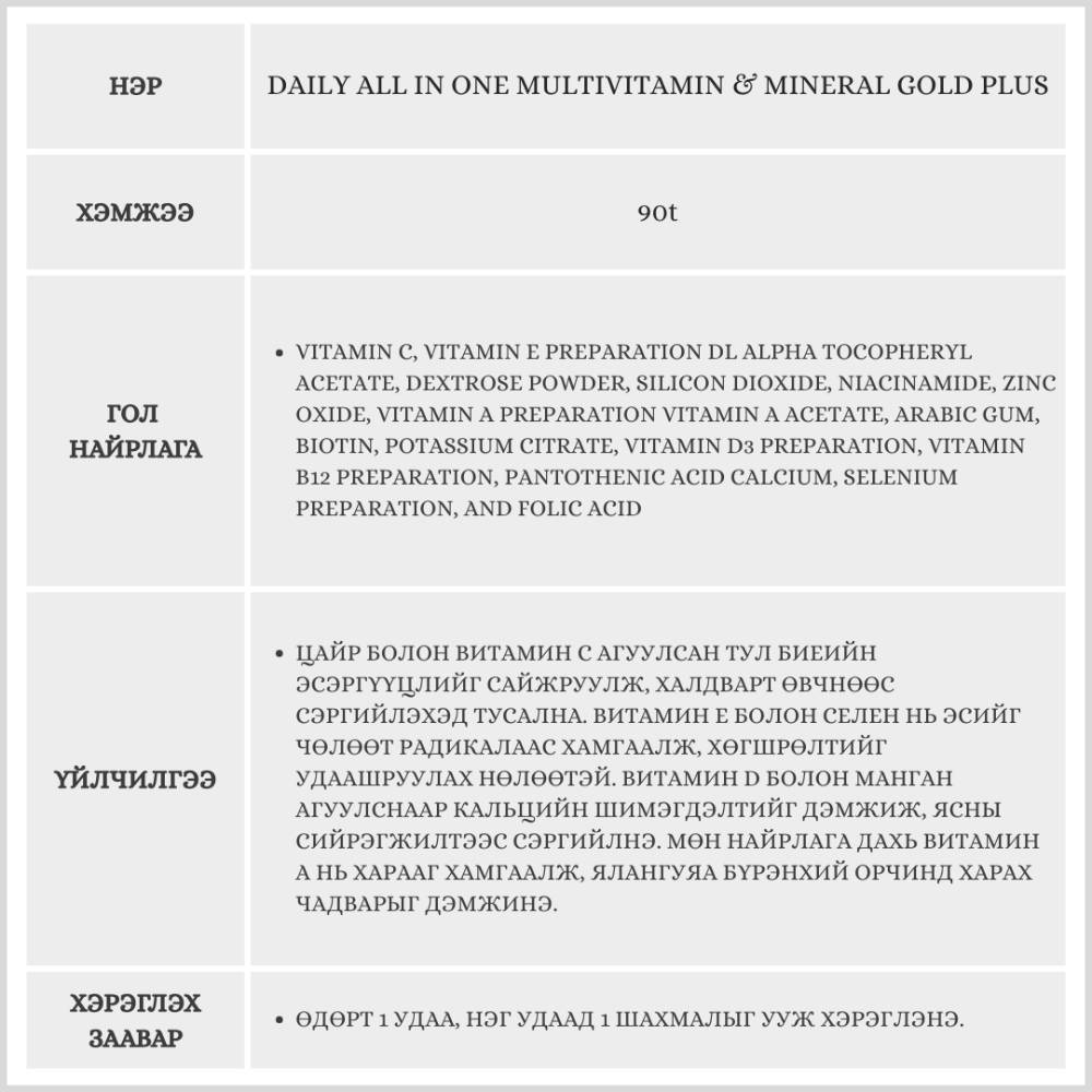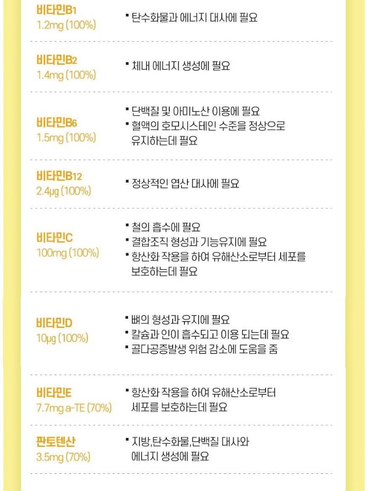 Энэхүү бүтээгдэхүүн нь 90 ширхэгтэй бөгөөд 3 сарын хэрэглээг агуулсан. Витамин B1, B2, B6, B12 зэрэг В бүлгийн витаминууд өндөр тунгаар агуулагдсан тул хоол хүнсийг энерги болгон хувиргаж, архаг ядаргааг тайлахад тусална.