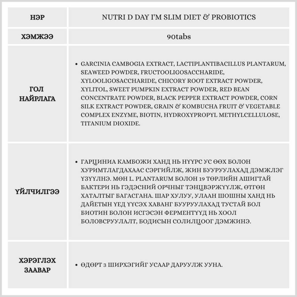 Нүүрс ус өөх болон хувирах үйл явцыг дарангуйлдаг гарциниа камбожи ханд болон гэдсэнд тустай ашигтай бактериудыг нэг дор агуулсан бүтээгдэхүүн юм.