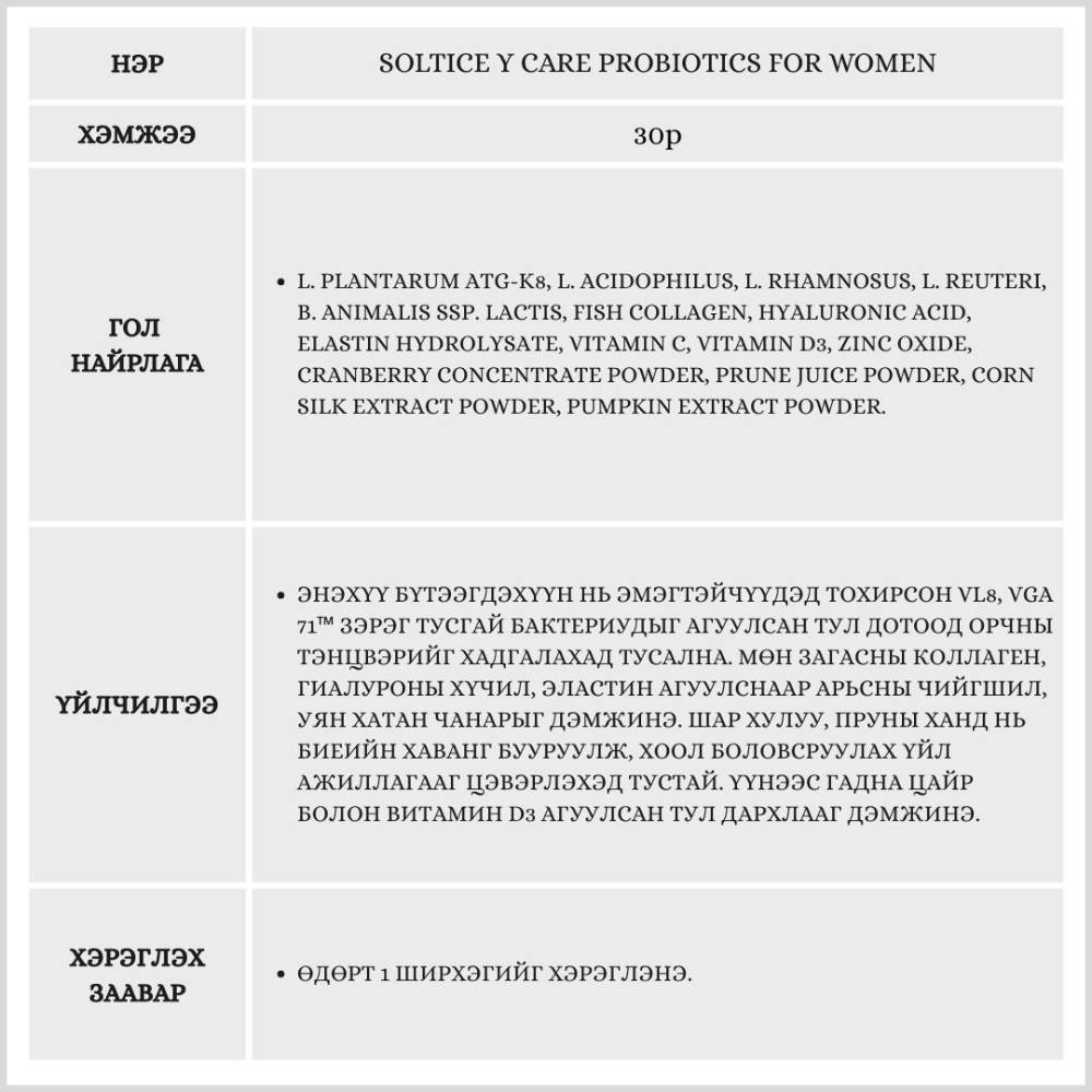 17 төрлийн ашигтай бактериас гадна арьс, гоо сайхан болон ерөнхий эрүүл мэндэд тустай коллаген, гиалуроны хүчил, байгалийн гаралтай ургамлын хандуудыг агуулсан ашигтай бактер юм.