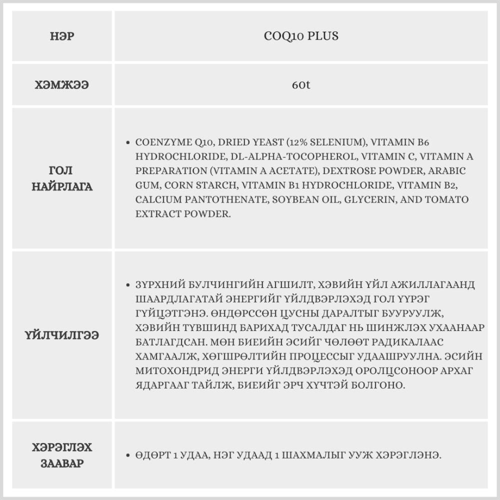 Энэхүү бүтээгдэхүүн нь 60 ширхэгтэй бөгөөд 2 сарын хэрэглээг агуулсан. Зүрх судасны эрүүл мэндийг дэмжиж, цусны даралтыг тогтворжуулахад тусална.