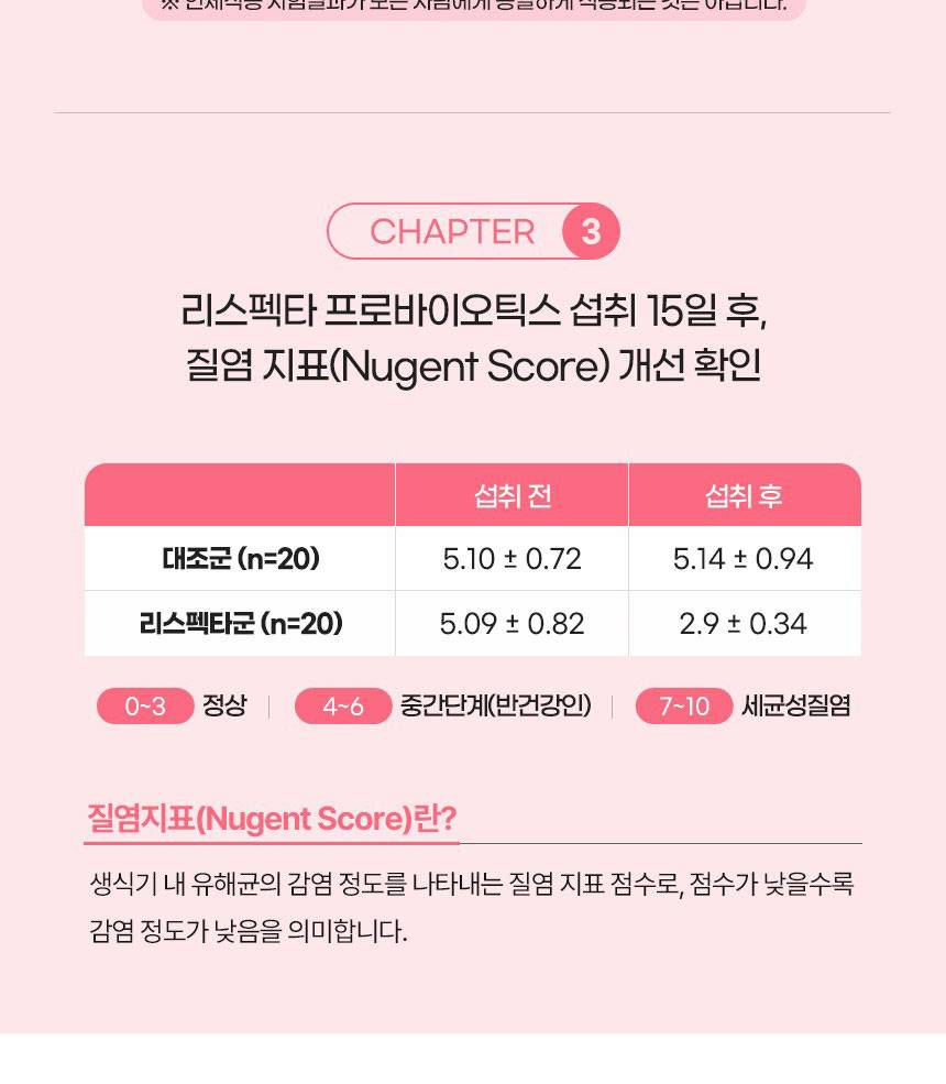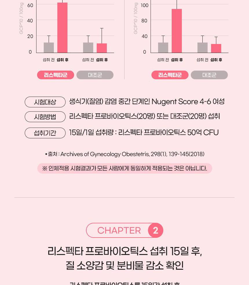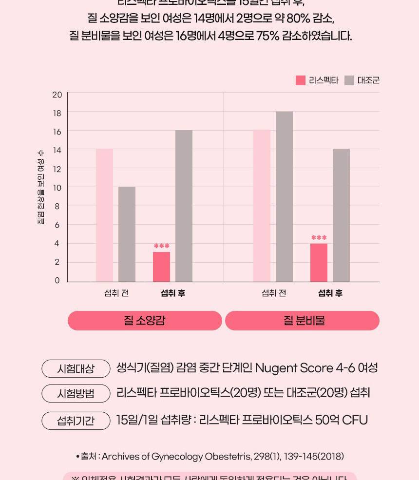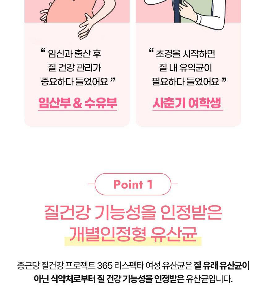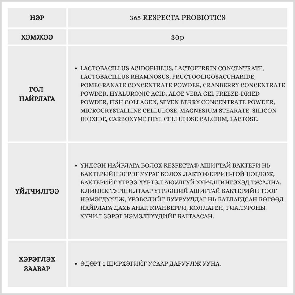 Энэхүү бүтээгдэхүүн нь эмэгтэйчүүдийн үтрээний эрүүл мэндэд зориулсан найрлага болох Respecta®-г гол найрлагаа болгосон. Үтрээний ашигтай бактерийг нэмэгдүүлж, хортой бактерийг дарангуйлах үйлчилгээтэй бөгөөд гэдэсний үйл ажиллагааг давхар дэмжинэ.