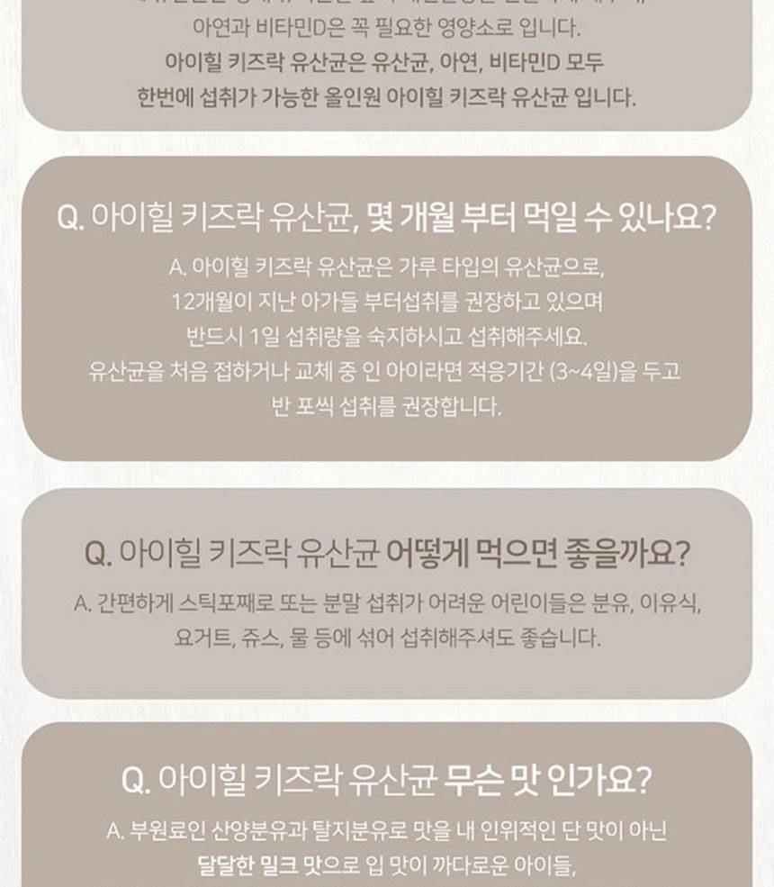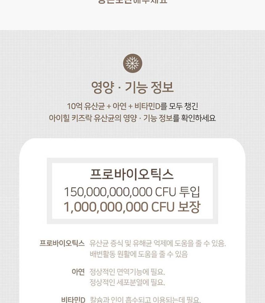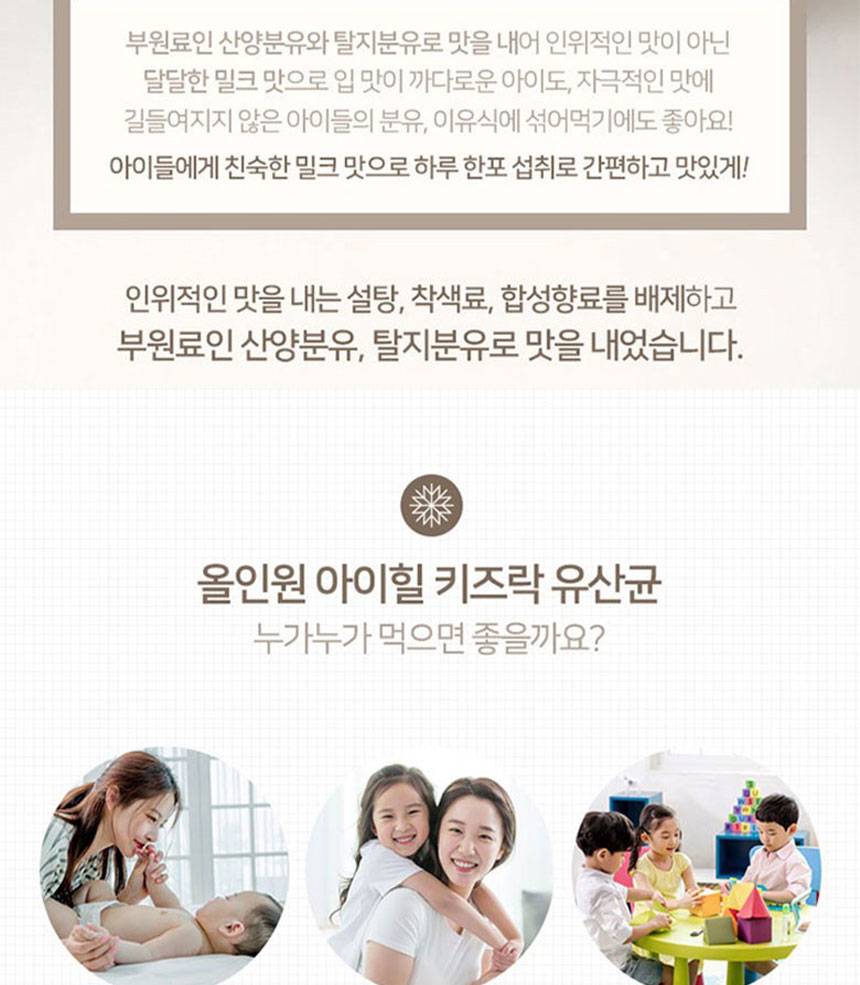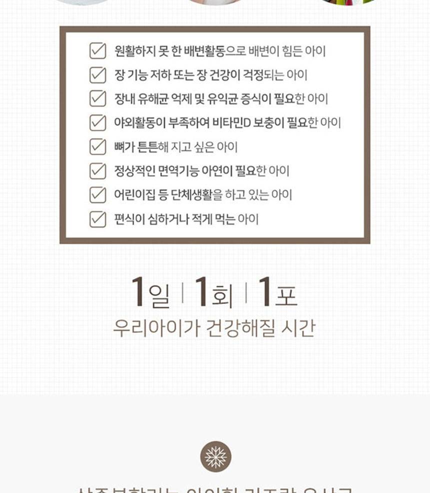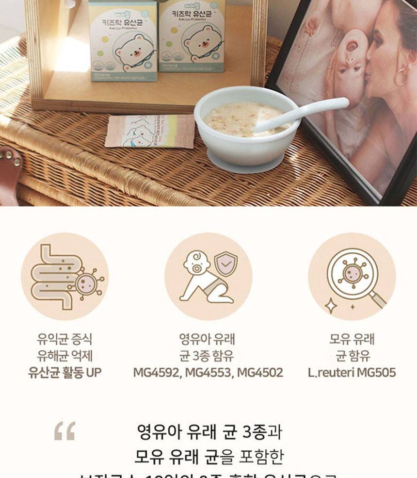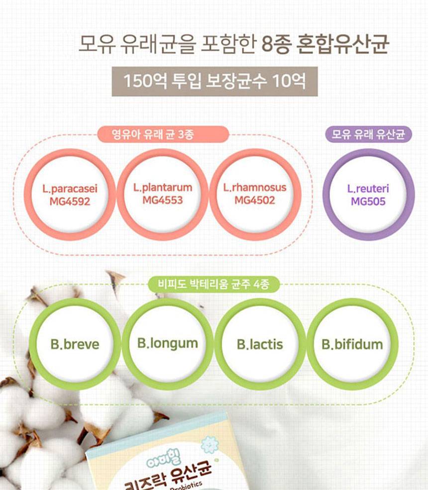 Хүүхдийн гэдэс, яс, дархлааг дэмжих үйлчилгээтэй бүтээгдэхүүн бөгөөд ашигтай бактер, цайр, витамин D-г агуулсан.