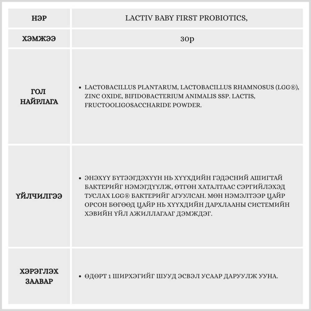 Нярай болон бага насны хүүхдэд тохирсон зөөлөн найрлагатай бөгөөд гэдэсний эрүүл мэндийг дэмжиж, дархлааг бэхжүүлэх Цайр агуулсан бүтээгдэхүүн юм.