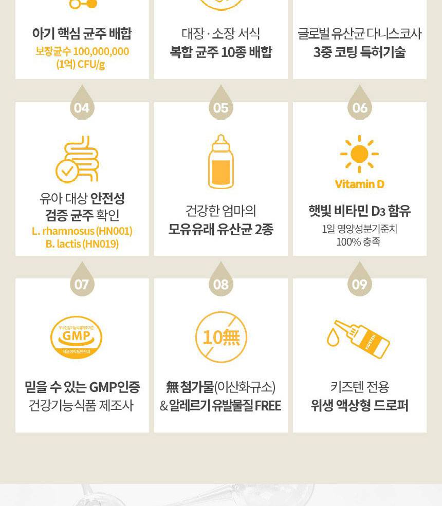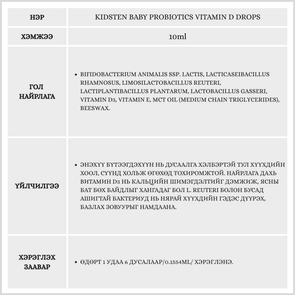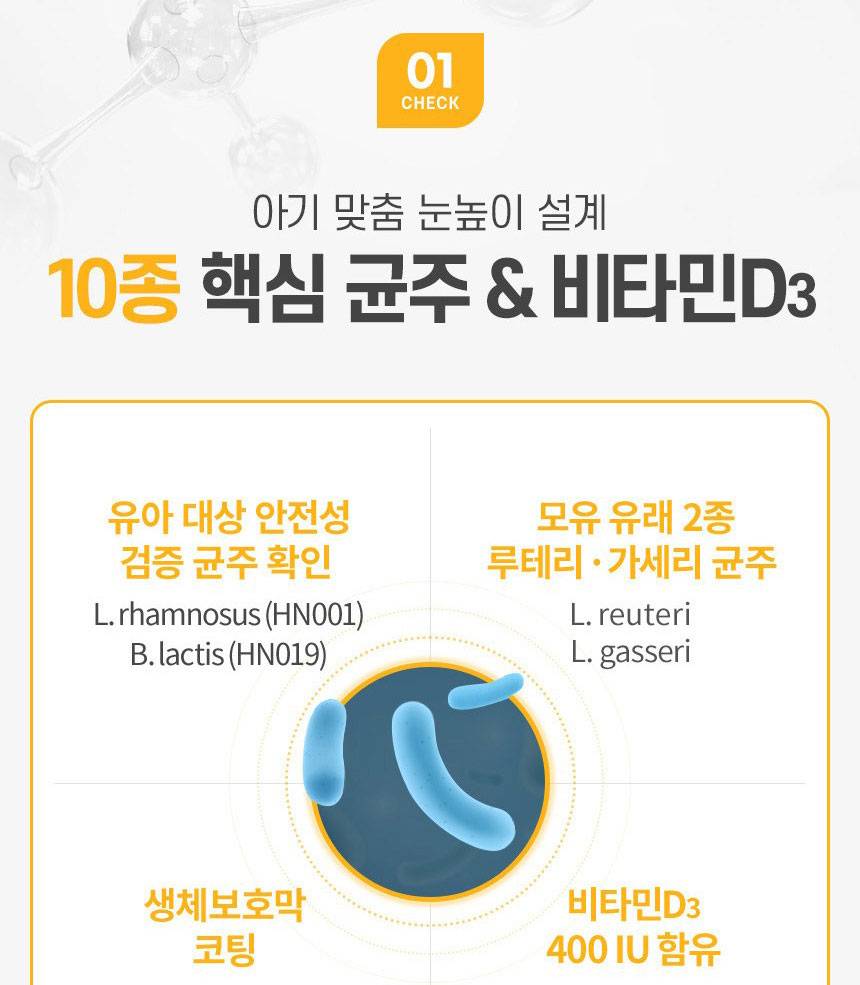 Нярай хүүхдийн гэдэсний бичил орчин болон ясны өсөлтийг давхар дэмжих шингэн бөгөөд ашигтай бактер юм. 7 төрлийн ашигтай бактери, Витамин D агуулсан тул дархлаа болон биеийн ерөнхий эрүүл мэндийг дэмжинэ.