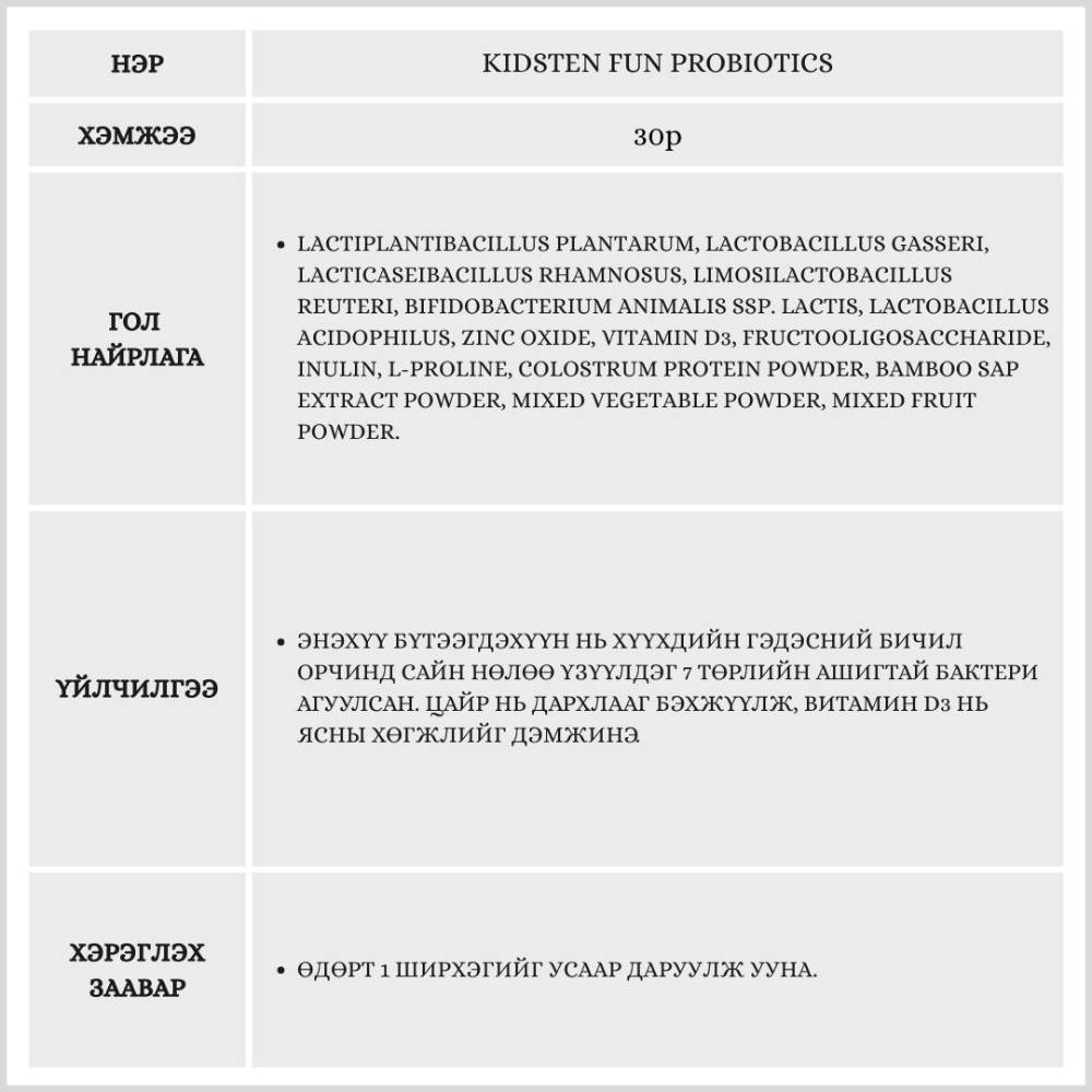 Хүүхдийн гэдэсний бичил орчин болон дархлаа, ясны хөгжлийг нэг дор дэмжих үйлчилгээтэй хүүхдийн ашигтай бактер юм.