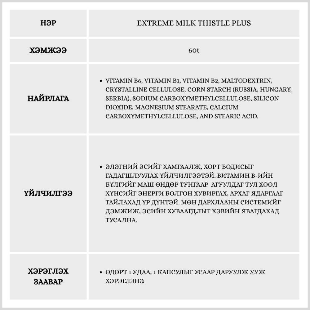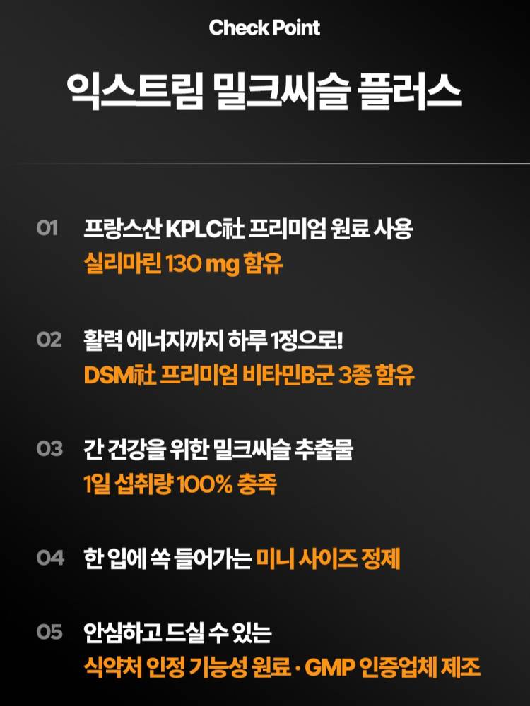 Солонгосын эрүүл мэндийн нэмэлт тэжээлийн зах зээлд маш алдартай, хүчтэй найрлагатай бүтээгдэхүүнүүдийн нэг юм. Элэг хамгаалахаас гадна эрчим хүчний бодисын солилцоог дээд зэргээр дэмжих онцлогтой. 60 ширхэгтэй бөгөөд 2 сарын хэрэгцээг хангана.