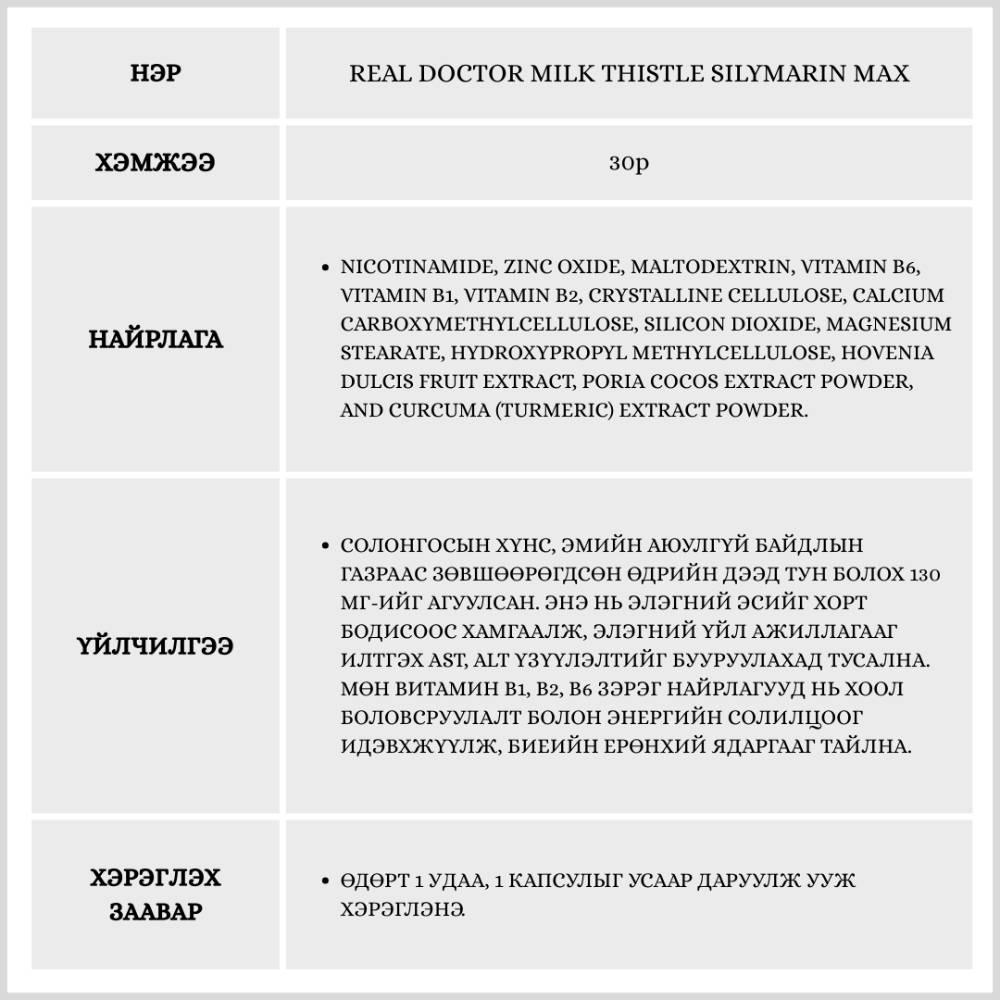 Энэхүү бүтээгдэхүүн нь 30 ширхэгтэй бөгөөд 1 сарын хэрэгцээг багтаасан. Элэгний эрүүл мэндийг дэмжих өндөр тунтай бүтээгдэхүүн бөгөөд биеийн ерөнхий ядаргааг тайлж, бодисын солилцоог идэвхжүүлнэ.