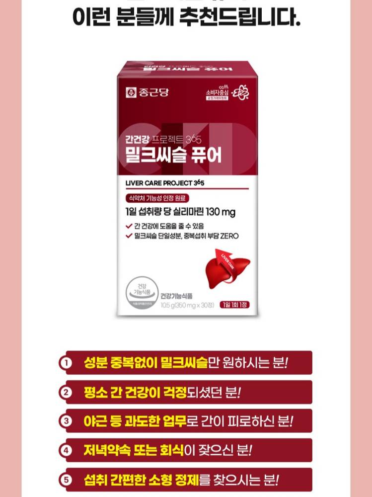 Солонгосын эмийн салбарт тэргүүлэгч Chong Kun Dang-аас гаргасан энэхүү бүтээгдэхүүн нь 30 ширхэгтэй, 1 сарын хэрэгцээг хангана. Элэгний эсийг хамгаалж, элэгний үйл ажиллагааг сайжруулахын зэрэгцээ элгийг хоргүйжүүлж, архаг ядаргааг тайлна.