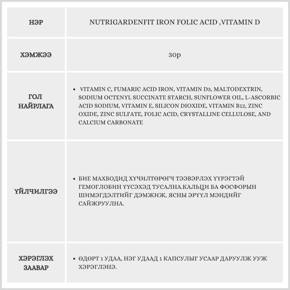 Энэхүү бүтээгдэхүүн нь 30 ширхэгтэй бөгөөд 1 сарын хэрэглээг агуулсан.Цусны эргэлтийг сайжруулж, цус багадалтаас сэргийлэхэд тусална.Мөн кальци ба фосфорын шимэгдэлтийг дэмжиж, ясны эрүүл мэндийг дэмжинэ.