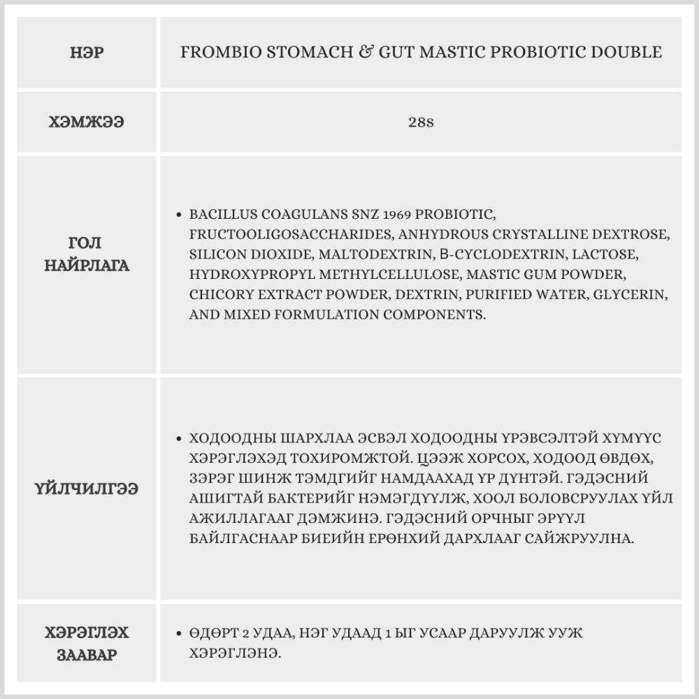 Энэхүү бүтээгдэхүүн нь ходоодны салстыг хамгаалж, ходоодны хямралыг намдаана. Гэдэсний ашигтай бактерийг нэмэгдүүлж, хоол боловсруулах үйл ажиллагааг дэмжинэ.