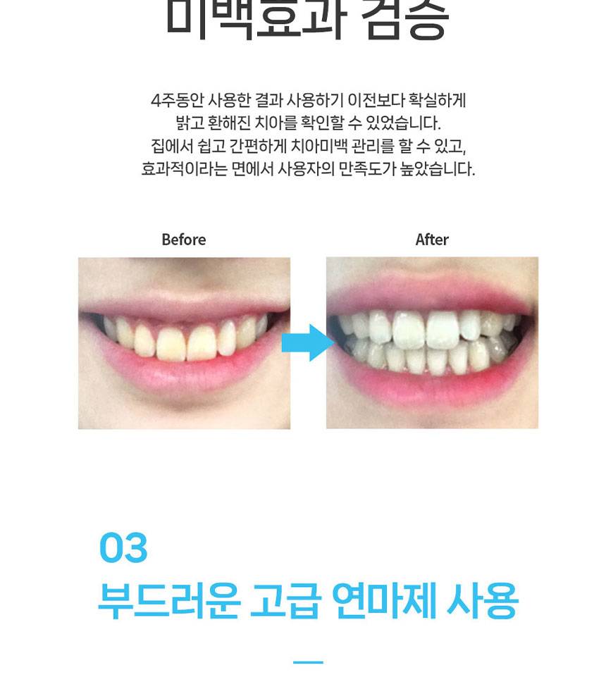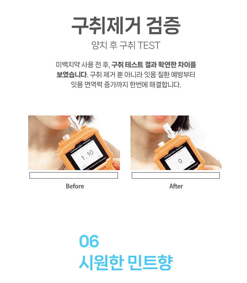 БНСУ-ын KFDA-аас зөвшөөрөгдсөн, шүд цайруулж толбо арилгах, амны эвгүй үнэр дарж, цоорлоос хамгаална.