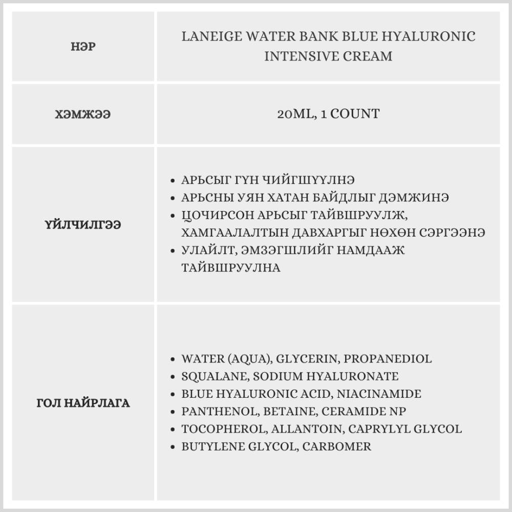 Гүн чийгшил өгч арьсыг булбарай зөөлөн болгож, тайвшруулна. Наалдамхай биш, хурдан шингэдэг бүтэцтэй. Арьсны өнгийг жигд болгож, илүү толигор харагдуулна.