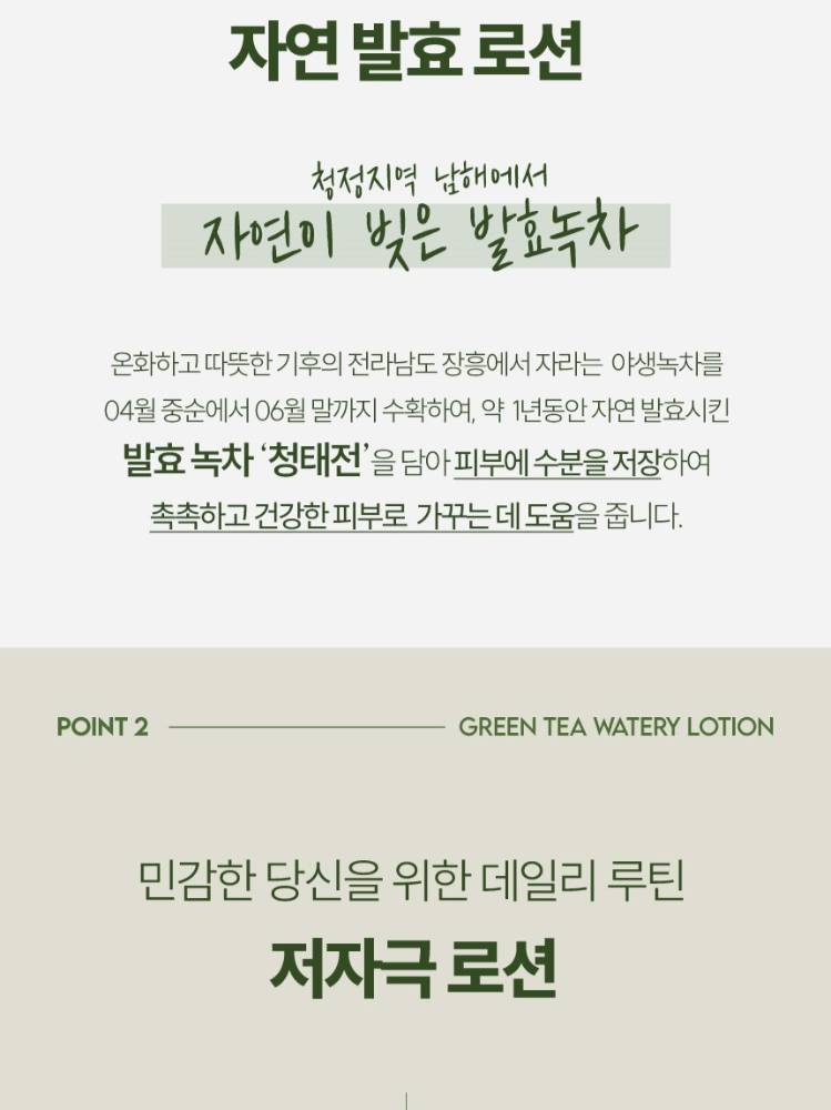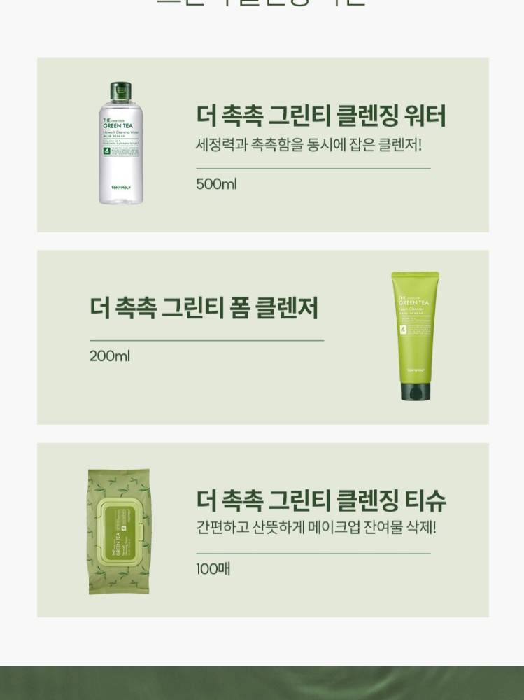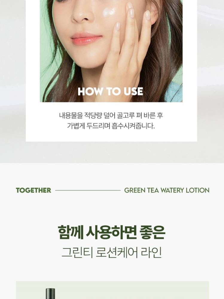 Энэхүү бүтээгдэхүүн нь ногоон цайны хандтай учир арьсыг чийгшүүлэн тайвшруулж, арьсанд тэжээл өгнө.