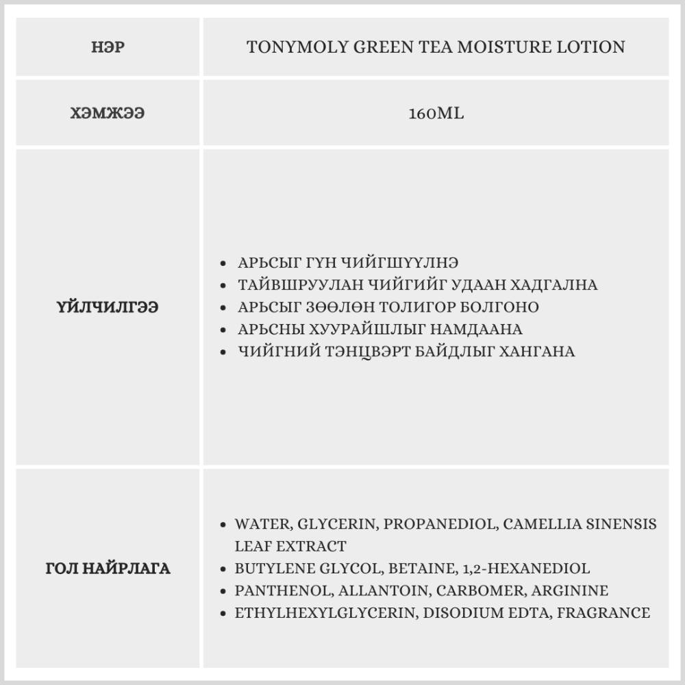 Tonymoly Green Tea Moisture Lotion, 160 ml /Лосьон/