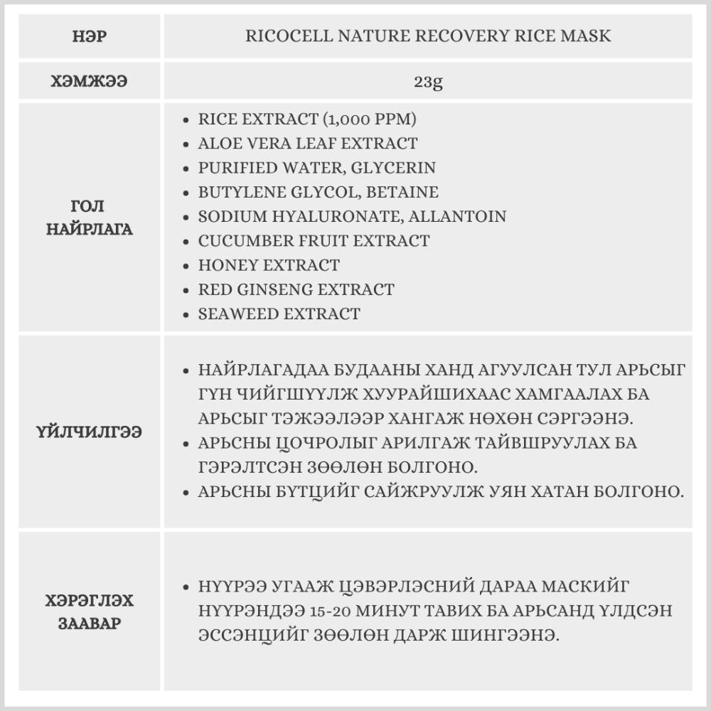 Будааны ханд найрлагадаа агуулсан арьсыг гүн чийгшүүлж, тайвшруулах үйлчилгээтэй нүүрний маск. Арьсны бүтцийг сайжруулж уян хатан болгоно.
