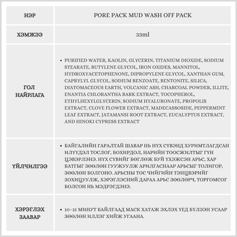 Энэхүү бүтээгдэхүүн нь арьсыг гүн цэвэрлэж, толигор болгох үйлчилгээтэй. 33мл авсаархан савлагаатай тул хаана ч авч явахад тохиромжтой бөгөөд маскыг түрхэх үед гар заваарахгүй онцлогтой.