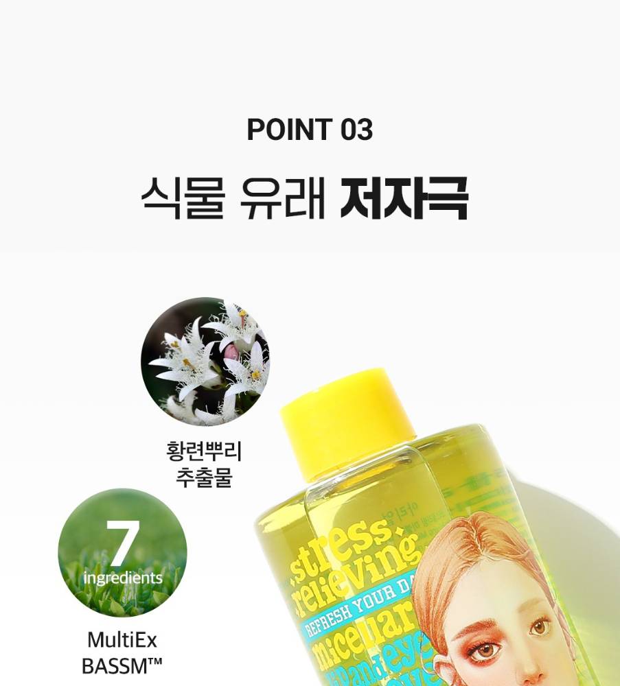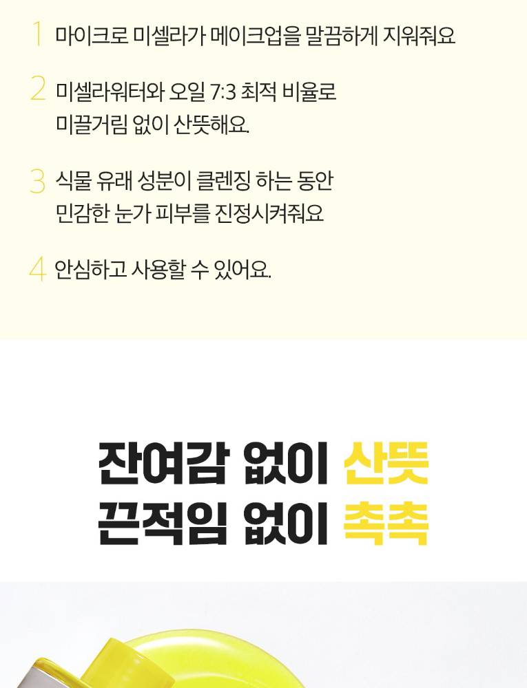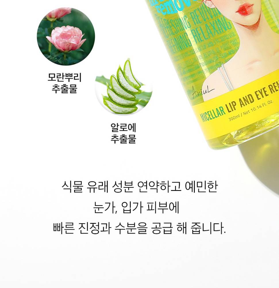 Уруул болон нүдний хэсгийн арьс нь эмзэг байдаг тул тус бүтээгдэхүүн нь хүчтэй дарж арчих шаардлаггүй зөөлөн уусган арилгадаг мицелла системтэй цэвэрлэгч. Веган найрлагатай учир харшил өгөхгүй гэдгээрээ онцлого. Арьсыг тайвшруулах, чийгшүүлэх үйлчилгээтэй цэвэрлэгч.