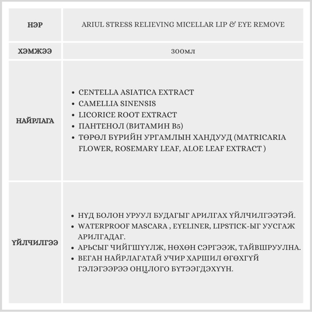 Ariul Stress Relieving Micellar Lip & Eye Remover, 300 мл