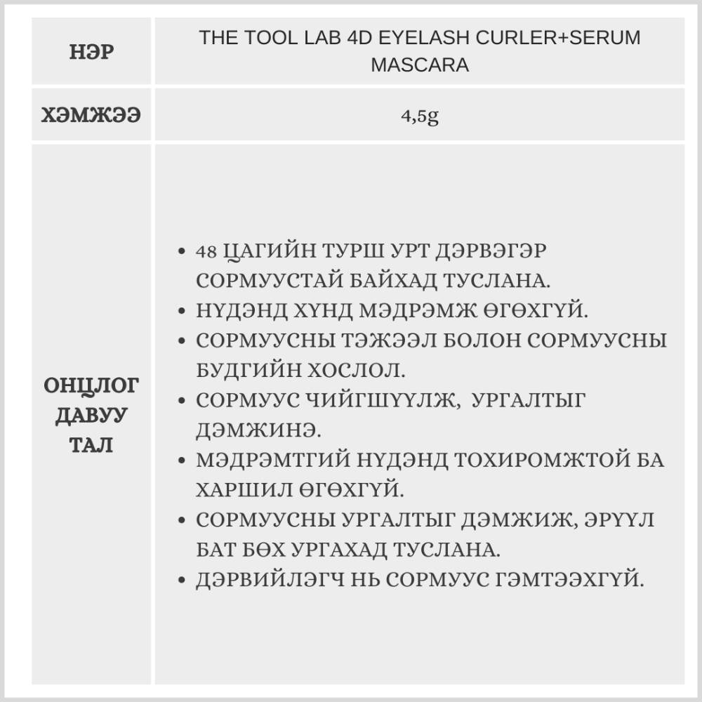 Энэхүү бүтээгдэхүүн нь таныг 48 цагийн турш урт дэрвэгэр сормуустай байхад туслана.