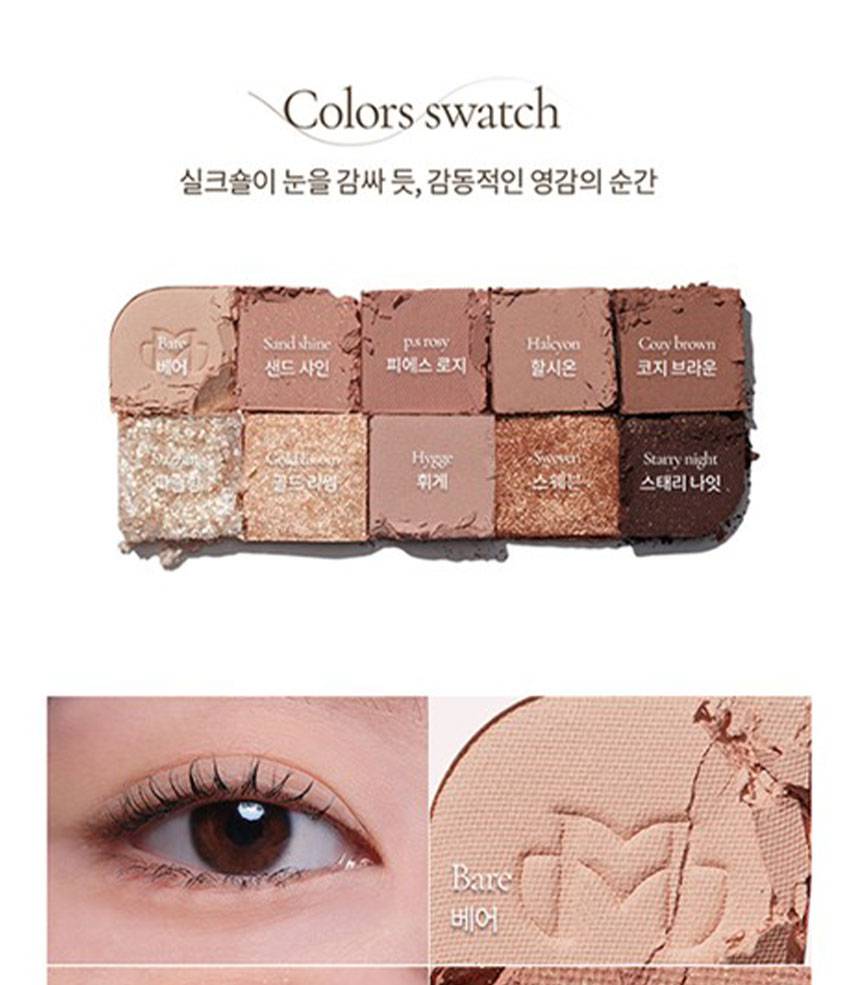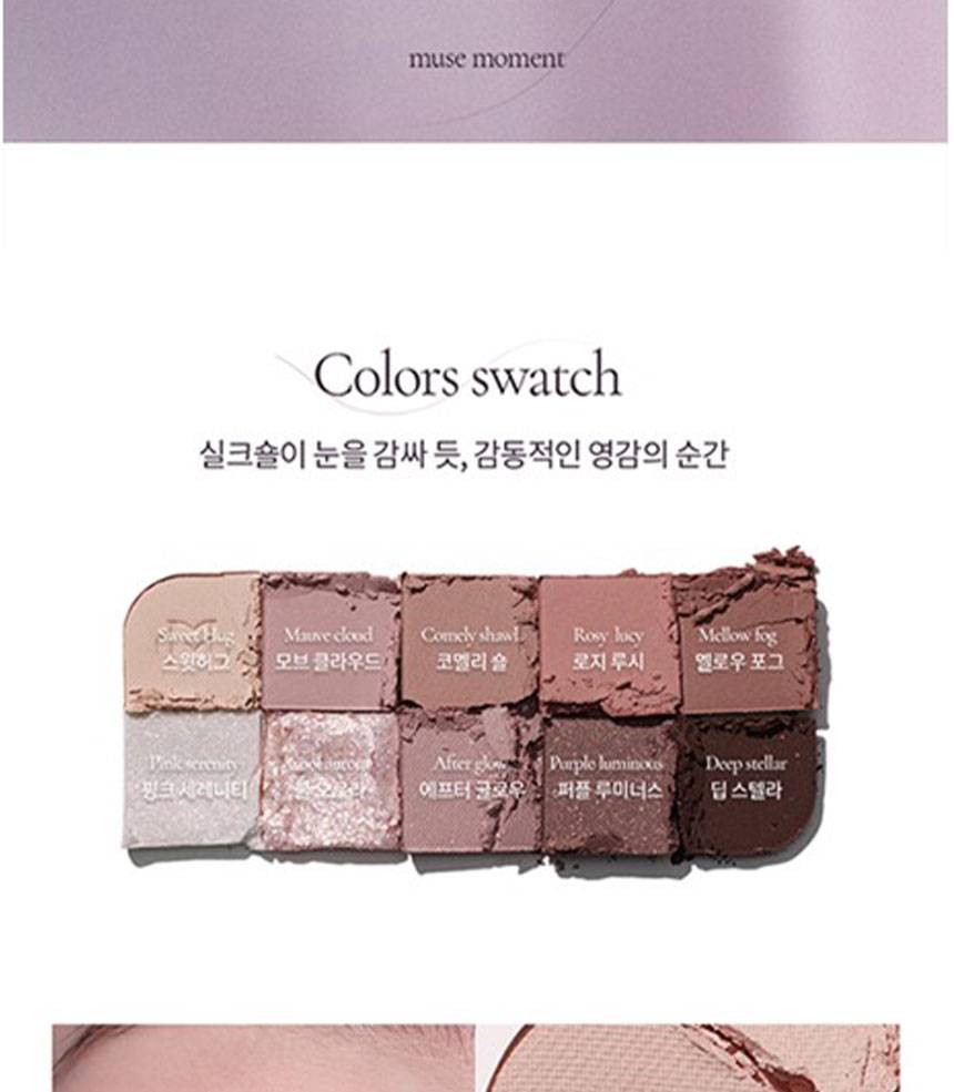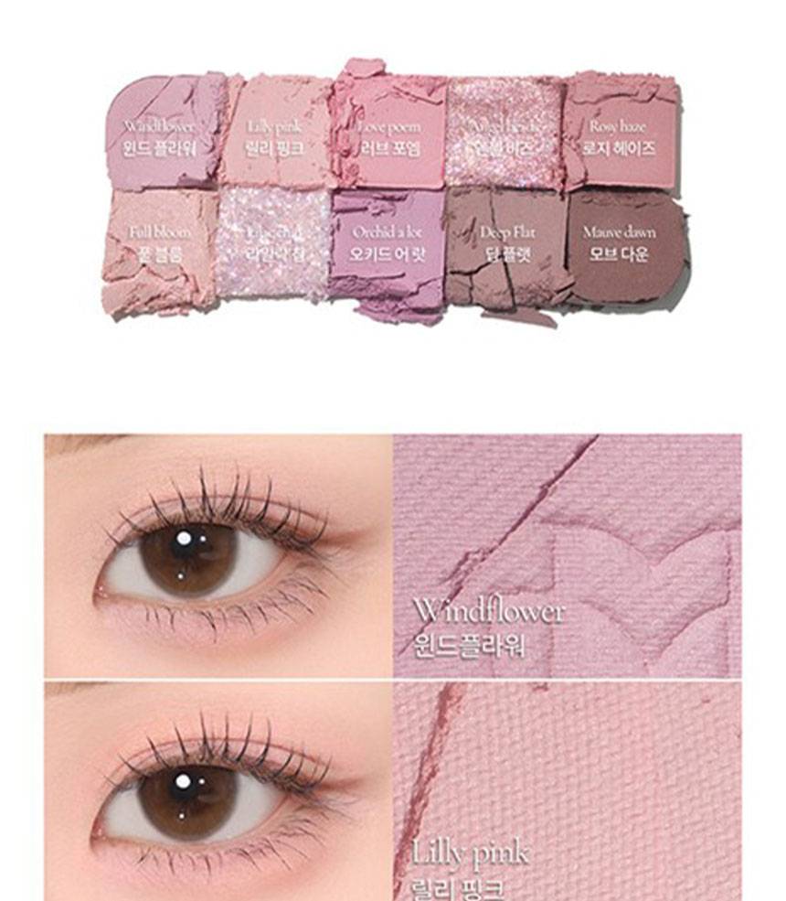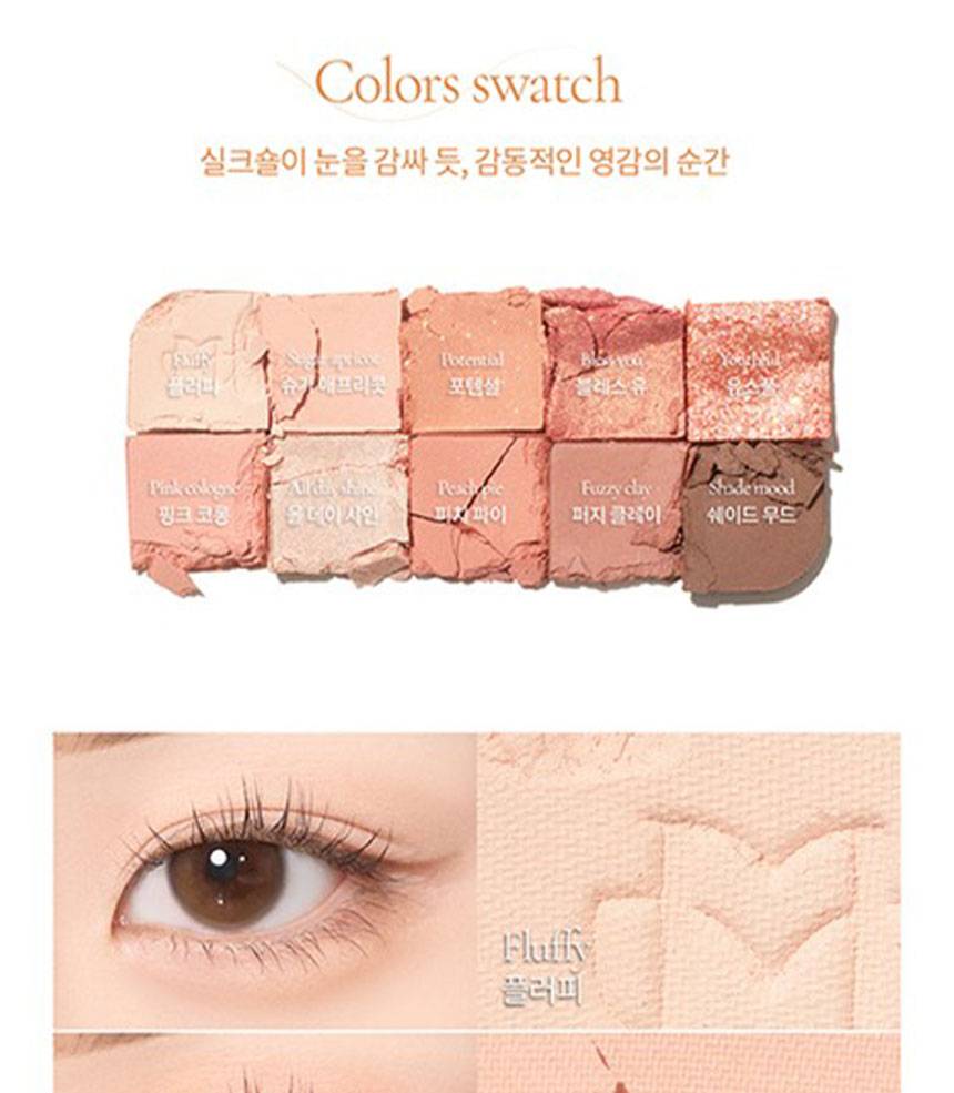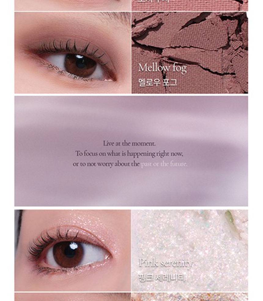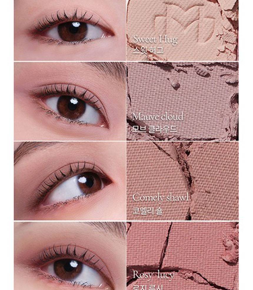 Matte, Shimmer, Glitter зэрэг олон төрлийн бүтэцтэй өнгөнүүдийг нэгтгэсэн бөгөөд, нүдэнд зөөлөн, натурал, зөөлөн, романтик будалт хийх боломжтой.