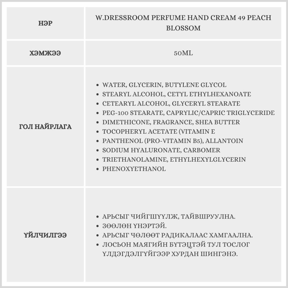W.Dressroom Perfume Hand Cream 49 Peach Blossom,50ml /Гарын тос/