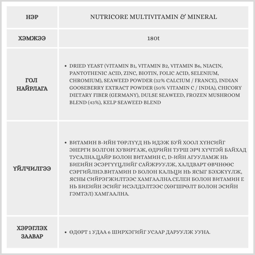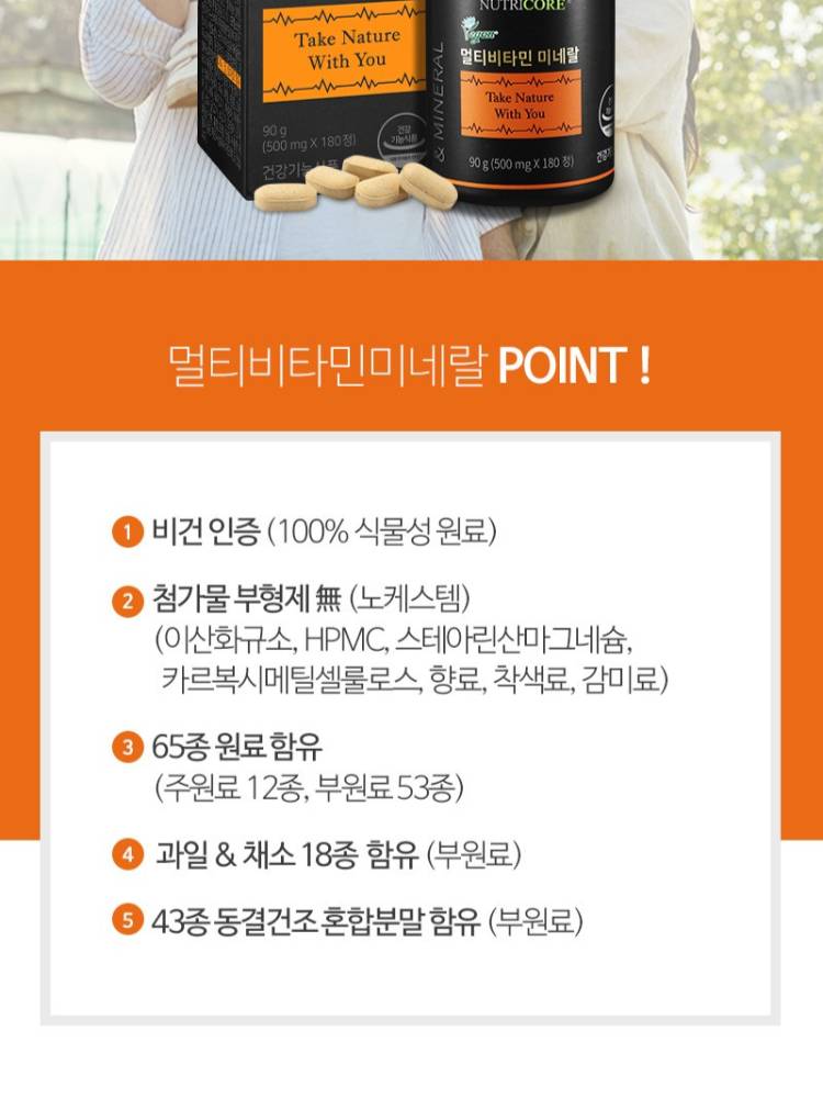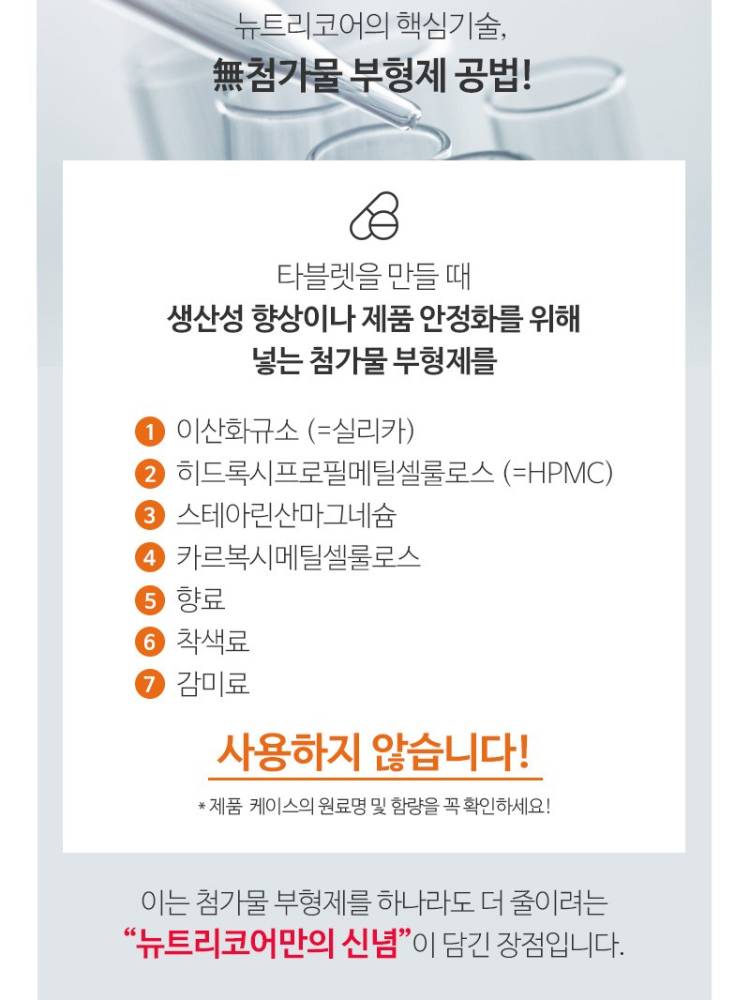 Солонгосын эрүүл мэндийн нэмэлт бүтээгдэхүүний зах зээлд байгалийн гаралтай гэдгээрээ маш алдартай.Nutricore ийн хамгийн том давуу тал нь химийн нэмэлт бодис ашигладаггүй.Химийн нэмэлт бодисоос татгалздаг, ходоод гэдэс мэдрэмтгий, байгалийн гаралтай цэвэр бүтээгдэхүүн хайж буй хүмүүст тохиромжтой.