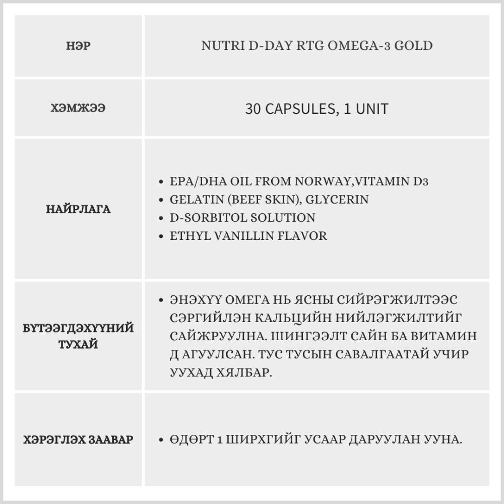 Nutri D-Day rTG Omega-3 Gold, 30 capsules, 1 unit /Омега 3/
