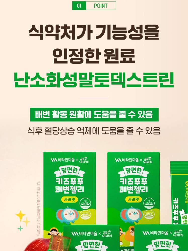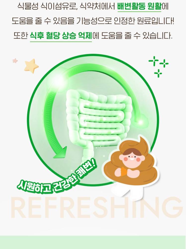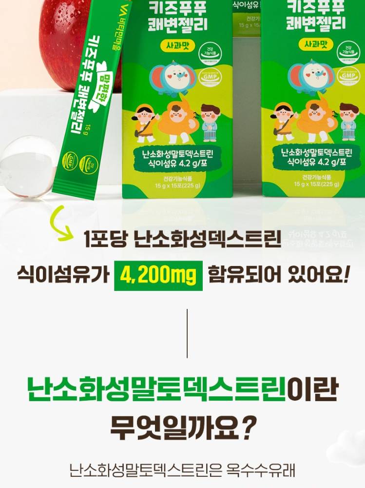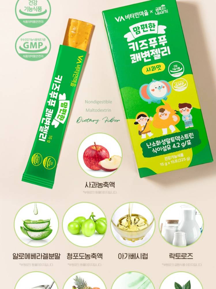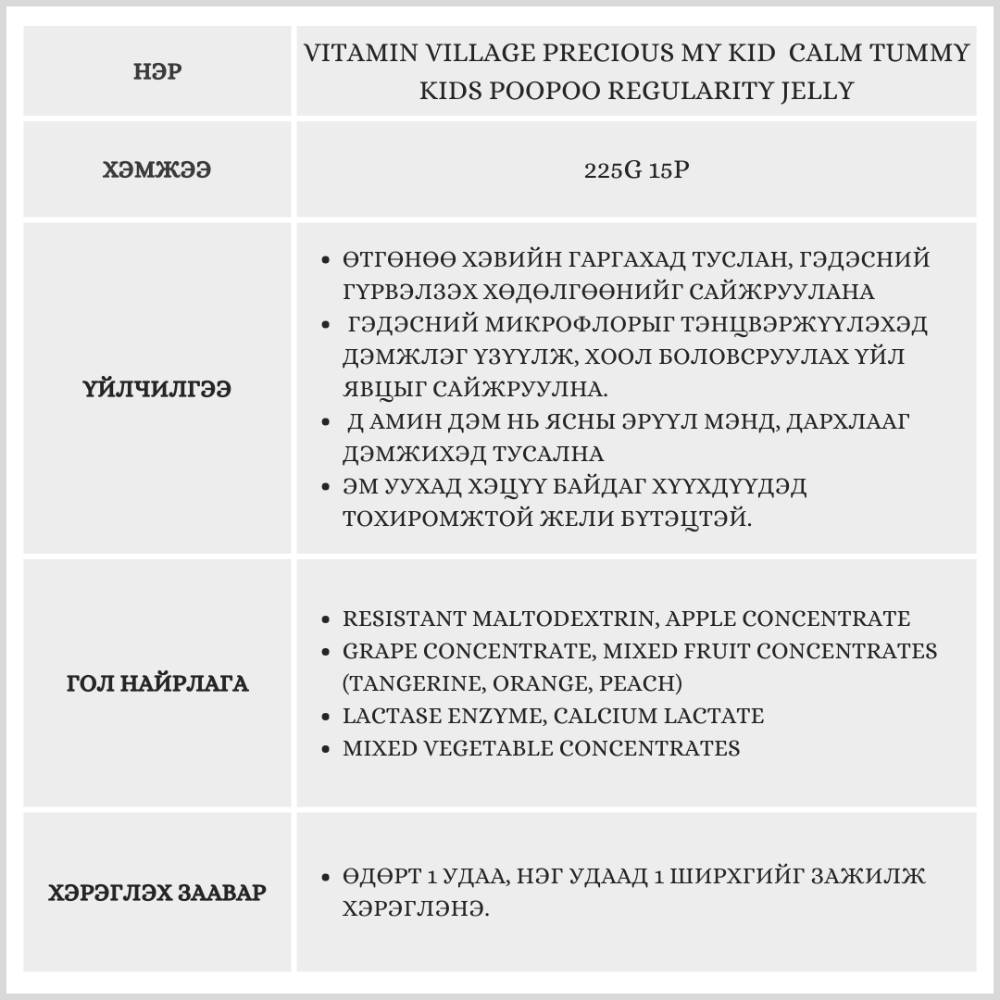 Тус бүтээгдэхүүн нь гэдэсний гүрвэлзэх хөдөлгөөнийг дэмжиж, өтгөн хаталтаас сэргийлнэ. Хүүхдүүдийн дуртай амттай, идэхэд хялбар, цэлцэгнүүрэн (желе) бүтэцтэй. Мөн хоол боловсруулах эрхтнийг сайжруулна.