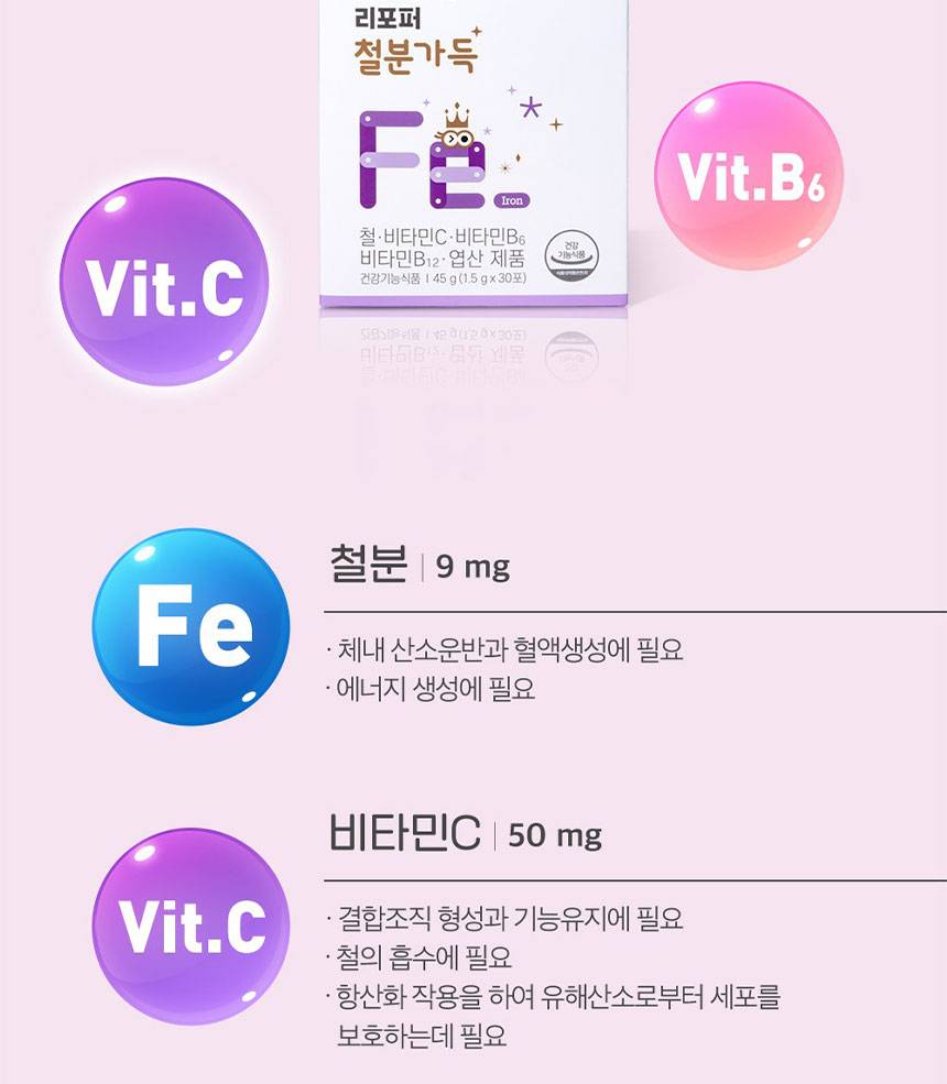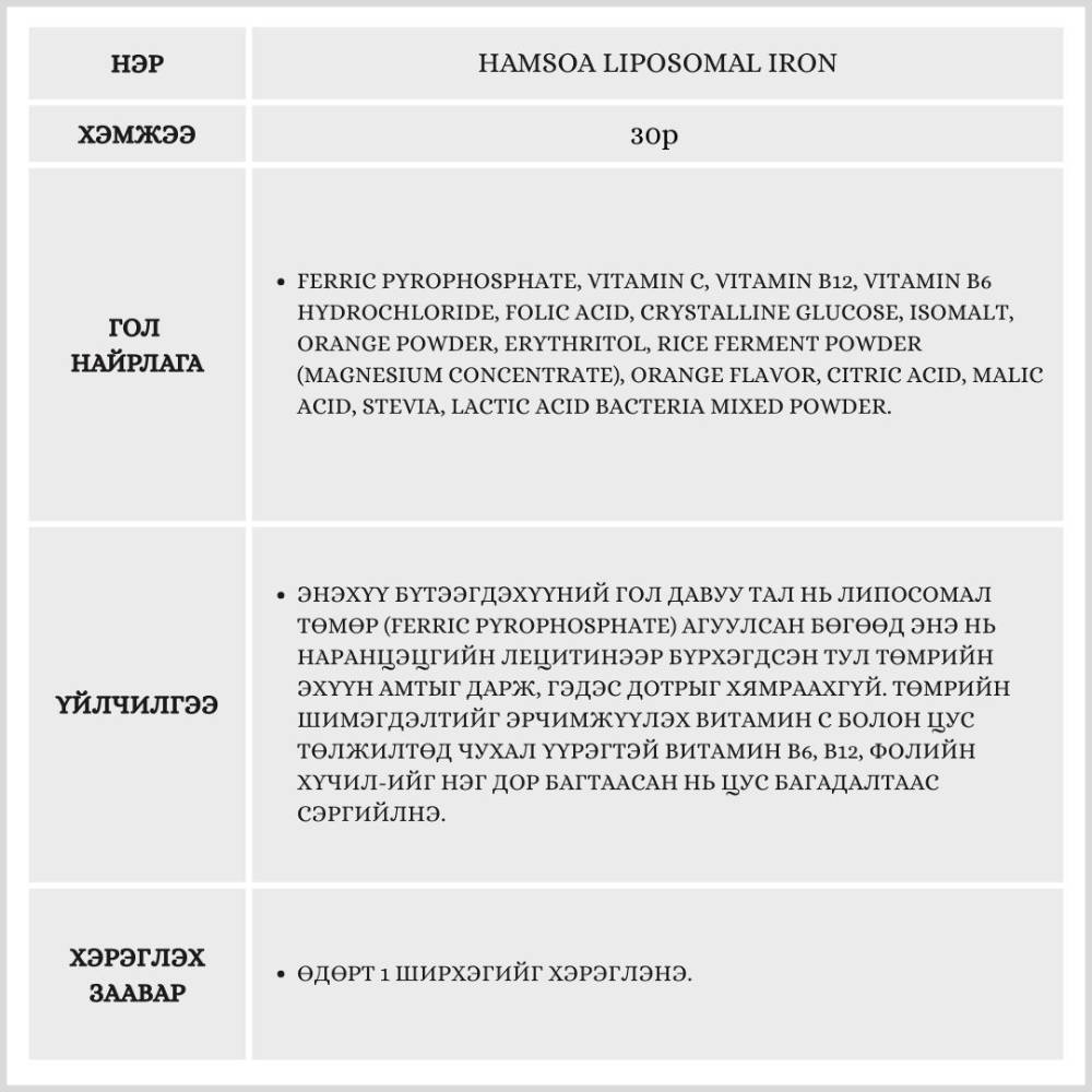 Хүүхдийн цус төлжилтийг дэмжиж, төмрийн дутагдлаас сэргийлэх үйлчилгээтэй, липосомал технологиор хийгдсэн төмрийн бэлдмэл юм. Энэхүү технологи нь төмрийг биед шимэгдэх чадварыг нэмэгдүүлж, ходоод цочроох гаж нөлөөг багасгана.