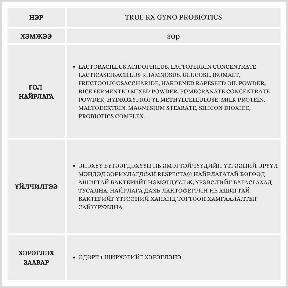 Энэхүү бүтээгдэхүүн нь үтрээний ашигтай бактерийг нэмэгдүүлж, хортой бактерийн өсөлтийг багасгаснаар эрүүл байхад тусална.