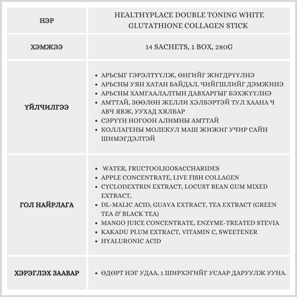 98% өндөр агууламжийн глутатион нь арьсны өнгийг гэрэлтүүлж, жигдрүүлэн тунгалаг болгож өгнө.300Da маш жижиг молекулт загасны коллаген нь арьсны уян хатан байдлыг дэмжин арьсны гүнд чийгшил өгч хамгаалах давхаргыг бэхжүүлнэ.
