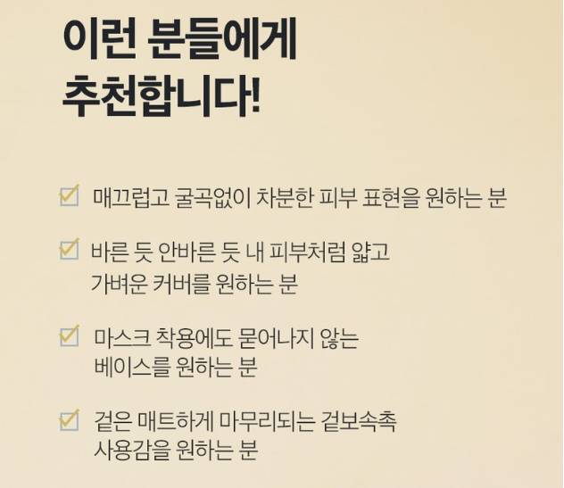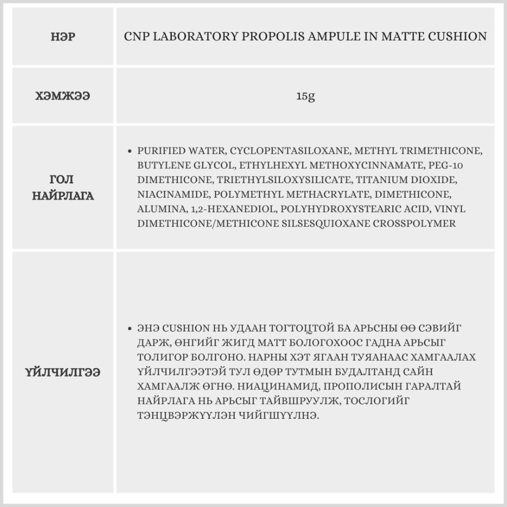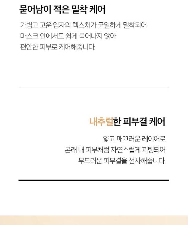 Өдөр тутмын нүүр будалтанд тохиромжтой, арьсны өнгийг жигд болгож, нүхжилт болон өө сэвийг далдлана. Зөгийн балны ханд агуулсан тул арьсыг тэжээллэг, чийглэг болгож, матт бүтэцтэй тул арьсыг цайвар, толигор харагдуулна. Мөн 15гр хэмжээтэй запас дагалдана.