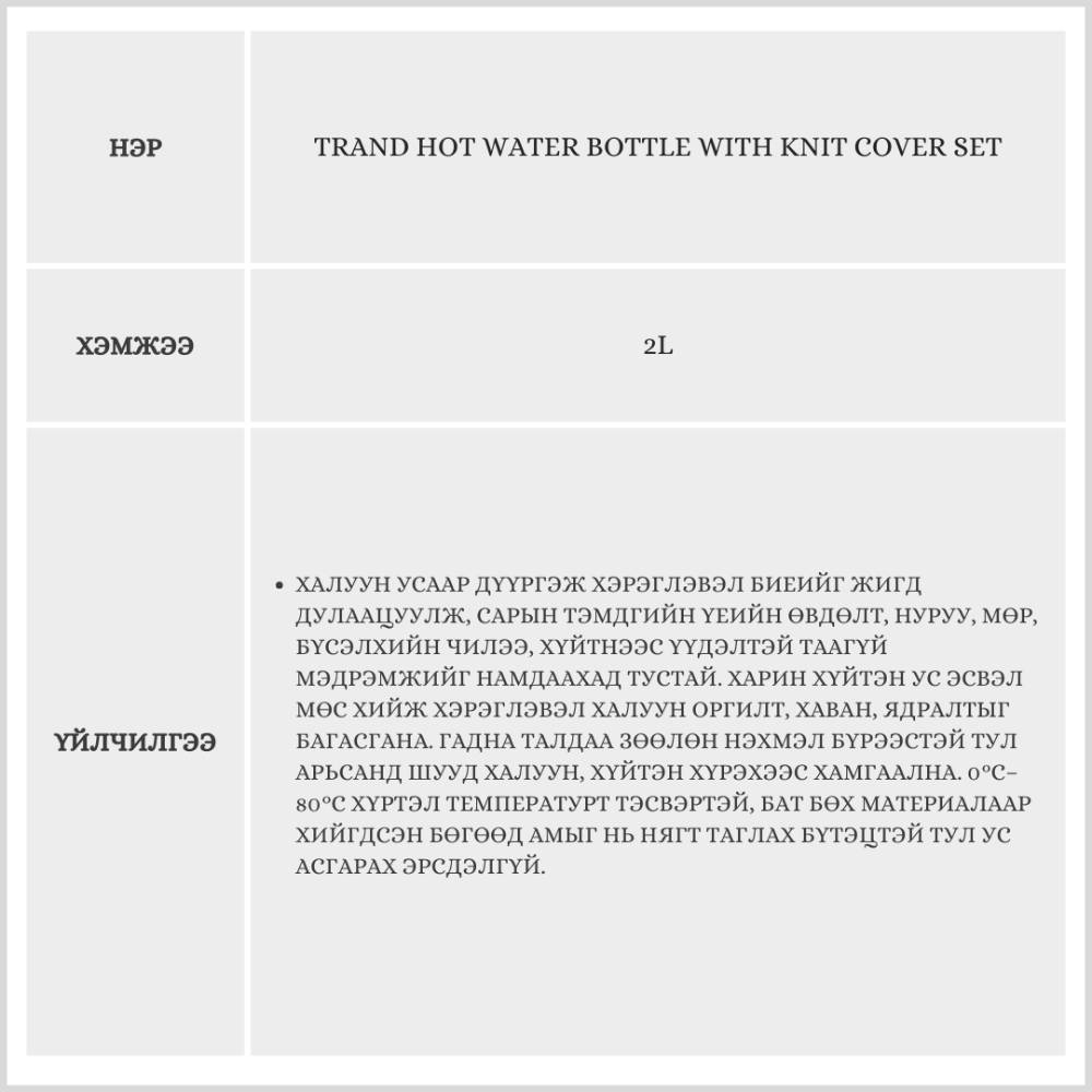 Энэхүү бүтээгдэхүүн нь халуун болон хүйтэн ус хийж хэрэглэх боломжтой. Сарын тэмдгийн үед халуун ус хийж хэрэглэвэл сарын тэмдгийн үеийн өвдөлтийг багасгана. Харин хүйтэн ус хийж хэрэглэвэл хаван буулгаж, хөөн бие болон биеийн ядаргааг тайлахад тустай.