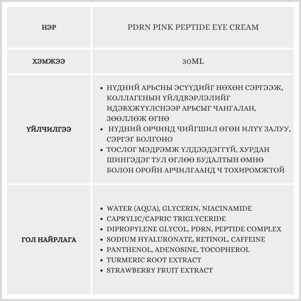 Арьсыг гүн чийгшүүлж, гэмтсэн эд эсийг нөхөн сэргээхээс гадна арьсны уян хатан чанарыг нэмэгдүүлнэ. Нүдний доорх хар хүрээг бүдгэрүүлнэ.